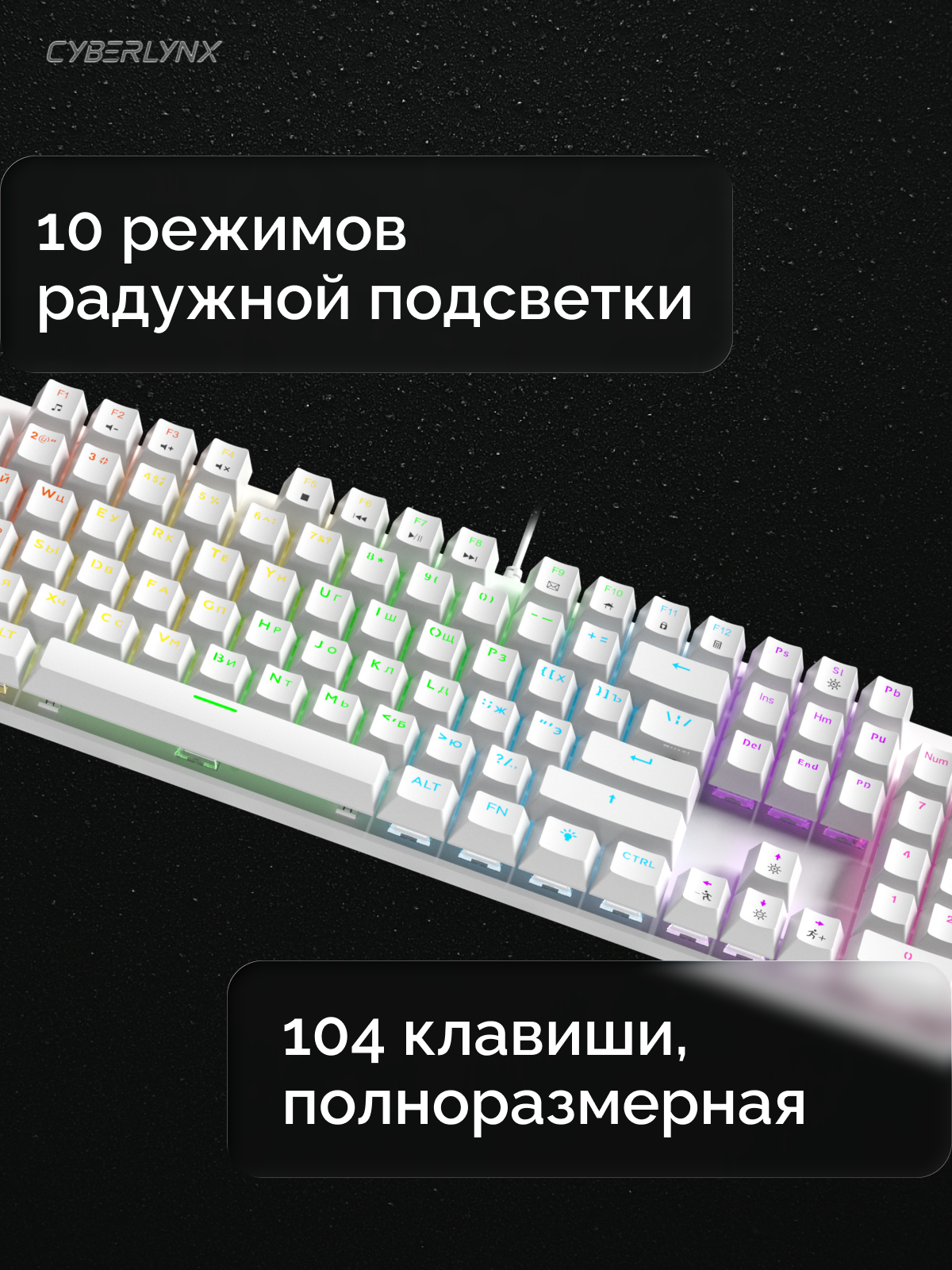 Клавиатура для компьютера CyberLynx BD104 Белая (White, Red Switch) игровая проводная механическая, RGB-подсветка: сравнение цен, характеристики, фото, актуальное наличие и цены.