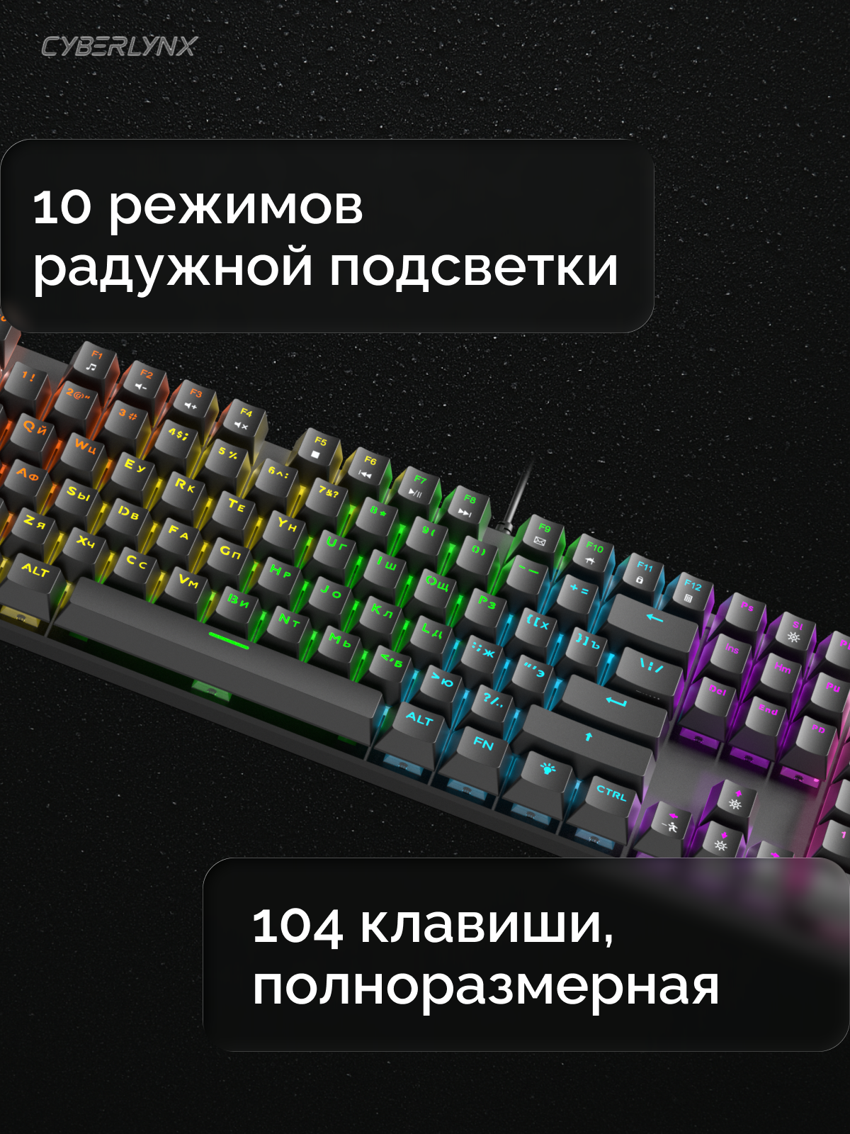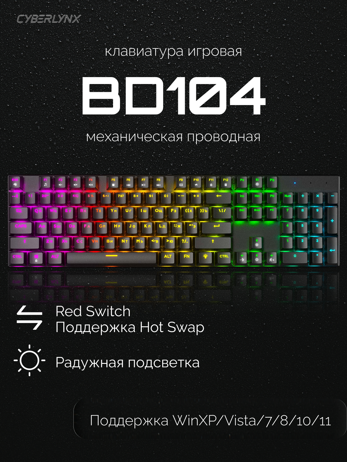 Купить Клавиатура для компьютера CyberLynx BD104 Черный (Black, Red Switch) игровая проводная механическая, RGB-подсветка с доставкой по всей России.