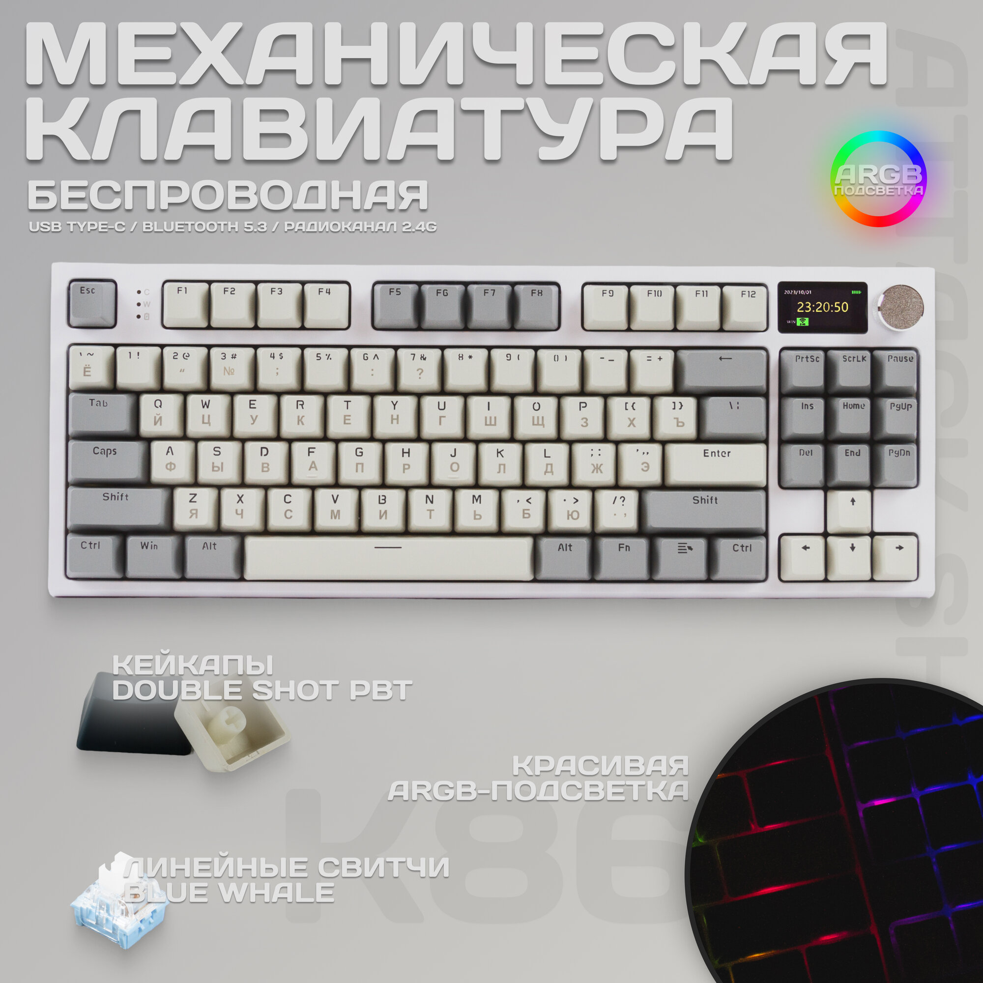 | Комплектация | механическая клавиатура Attack Shark K86 RGB, USB-кабель, руководство пользователя, свитч-пуллер, кейкап-пуллер, 2 запасных свитча |