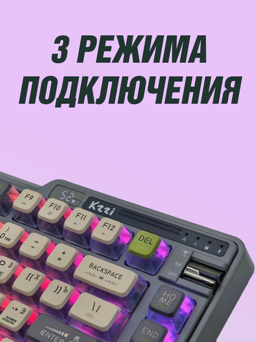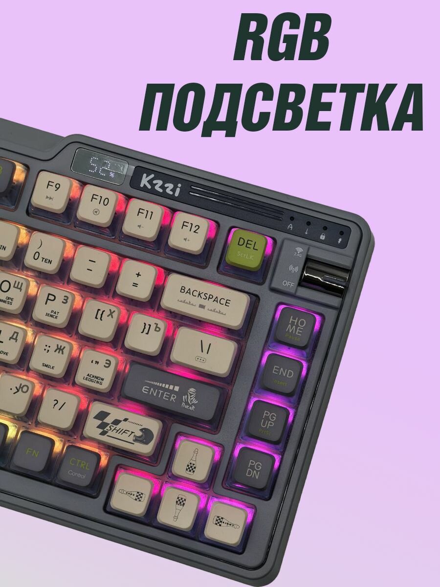 Купить Клавиатура для компьютера механическая беспроводная игровая Kzzi K75/Трехрежимная: проводная + 2.4G + BT/Русская раскладка/Черная с доставкой по всей России.