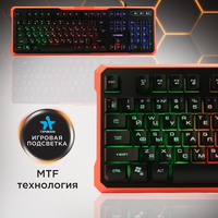 Технические характеристики: Тип клавиатуры: мембранная Тип подключения: проводной Количество клавиш: 104 шт Подсветка: Rainbow, 2 режима, регулирование яркости Длина кабеля: 1.5 м Цвет: черный Размеры: 455х155х35 мм Вес: 735 г