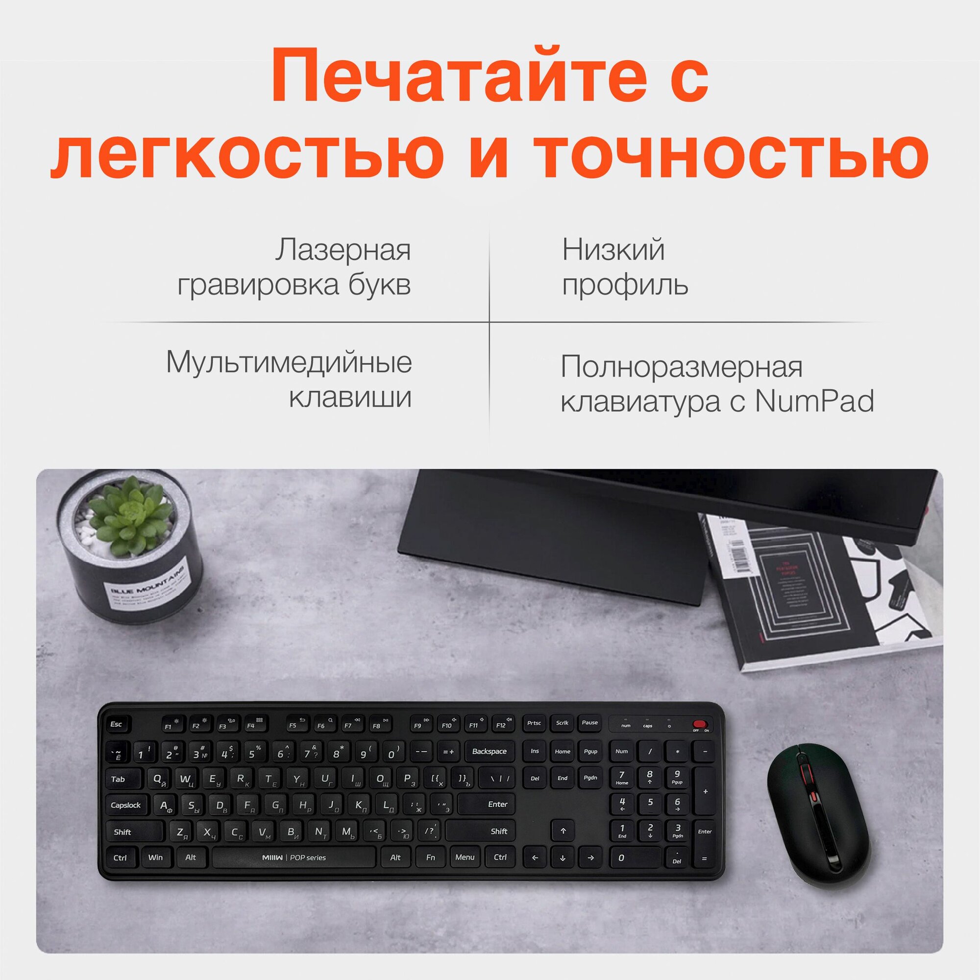 Купить Клавиатура и мышь беспроводные MIIIW Wireless Quiet Keyboard and Mouse Combo Gen 3 Черная + RU Гравировка с доставкой по всей России.