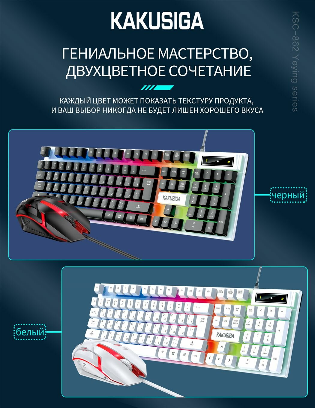 Клавиатура и мышь Kakusiga серии KSC-862 Yeying с подсветкой / Черный: сравнение цен, характеристики, фото, актуальное наличие и цены.