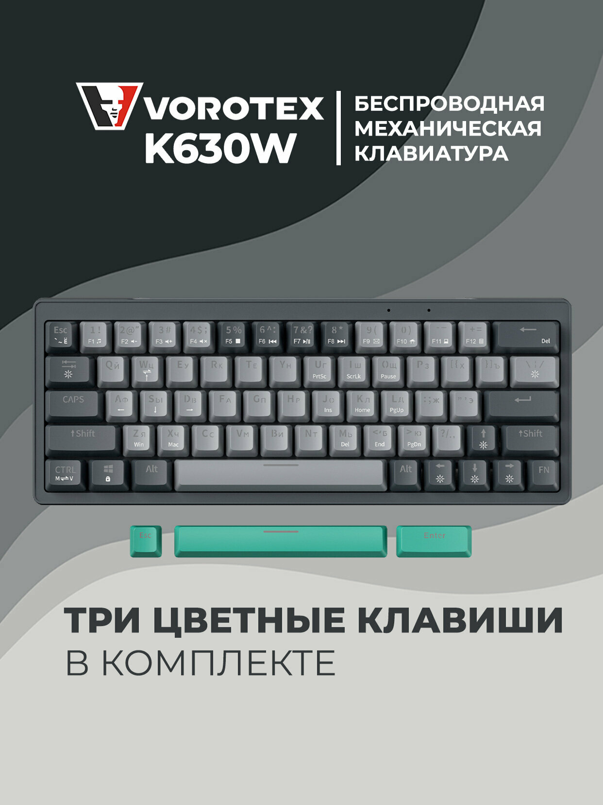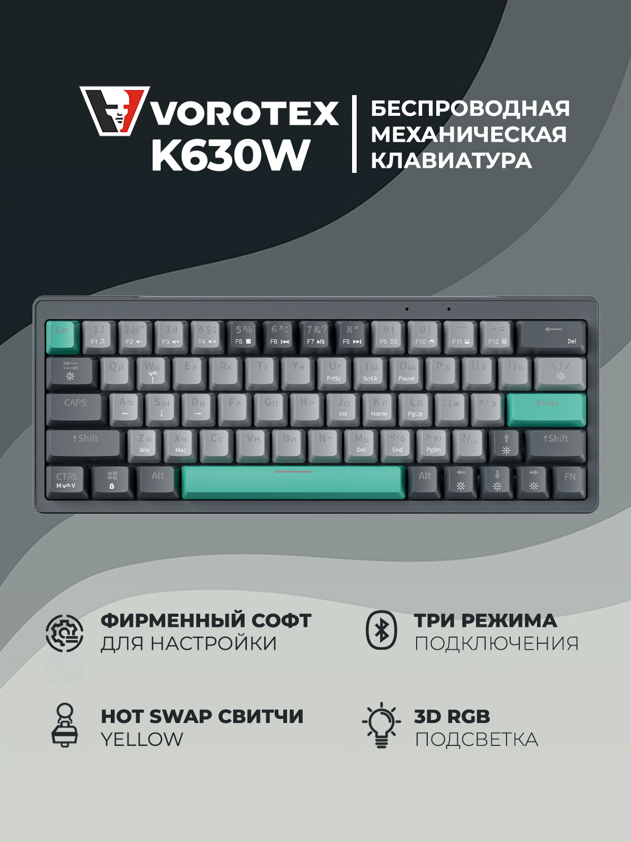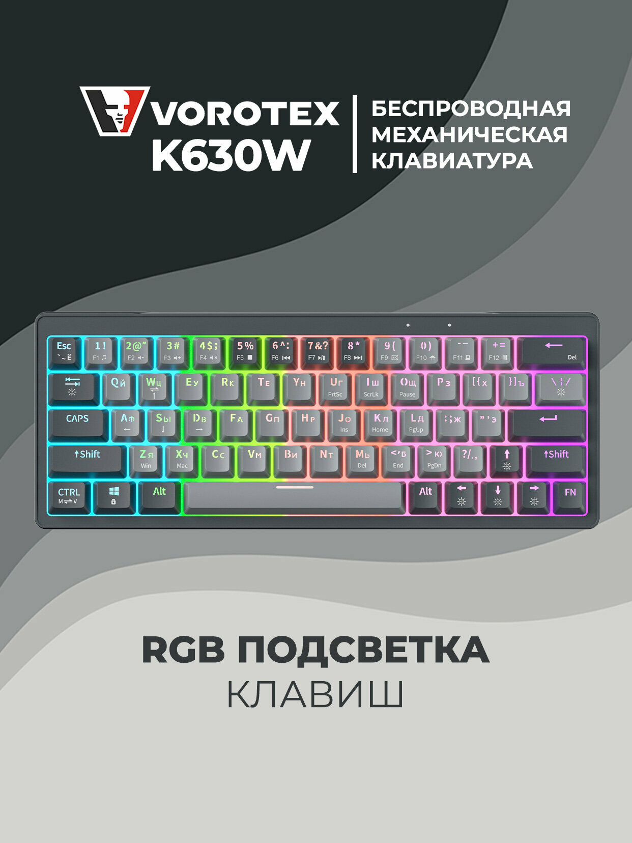 Клавиатура игровая беспроводная VOROTEX K630W Yellow Switch, русская раскладка (Серый): сравнение цен, характеристики, фото, актуальное наличие и цены.