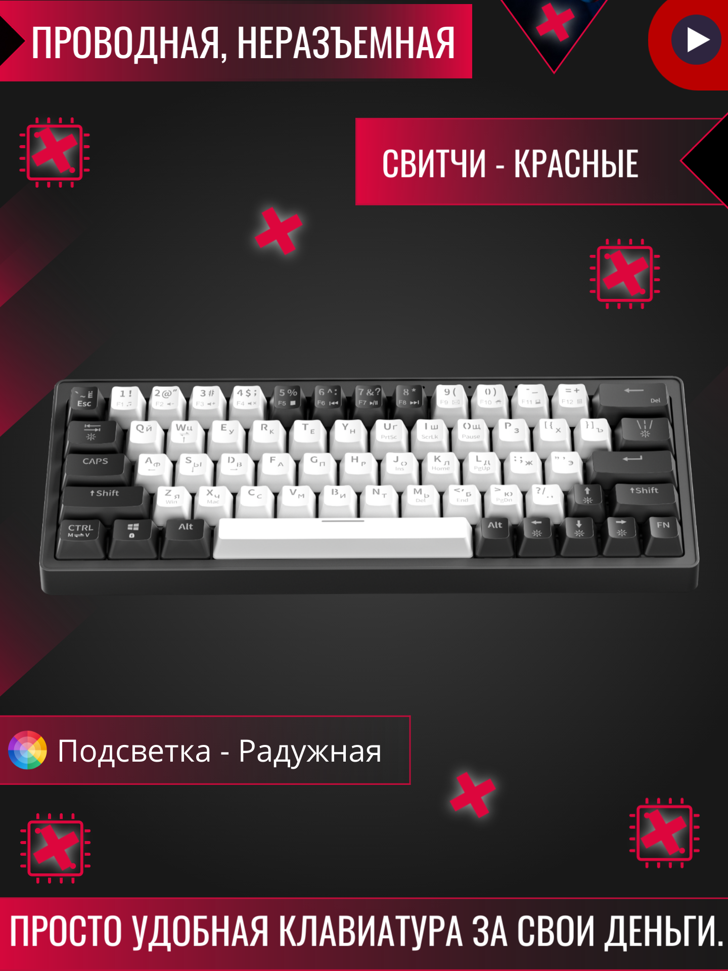 Клавиатура механическая игровая с подсветкой 60%, CyberLynx, подсветка, USB 2.0, белая: сравнение цен, характеристики, фото, актуальное наличие и цены.