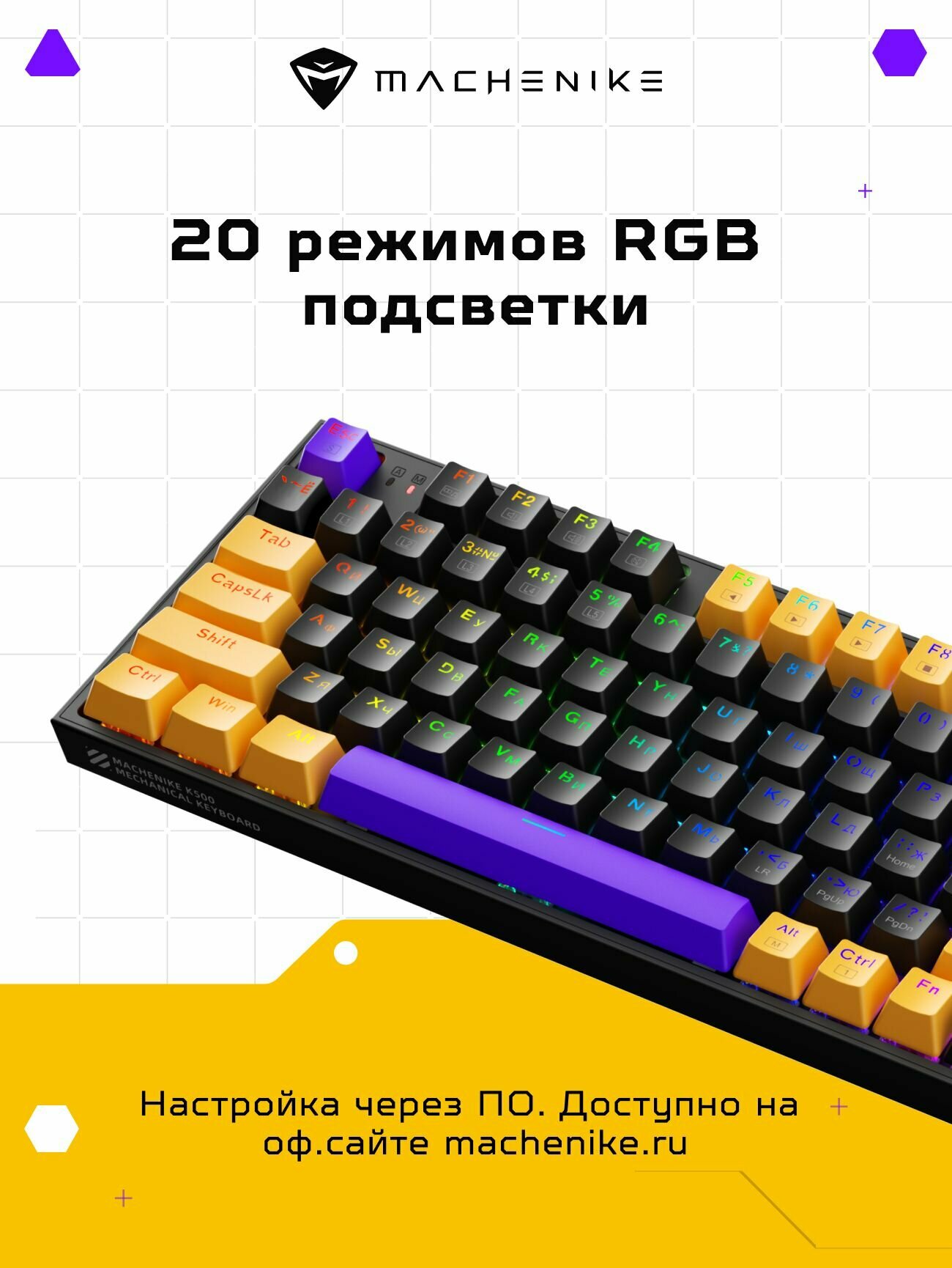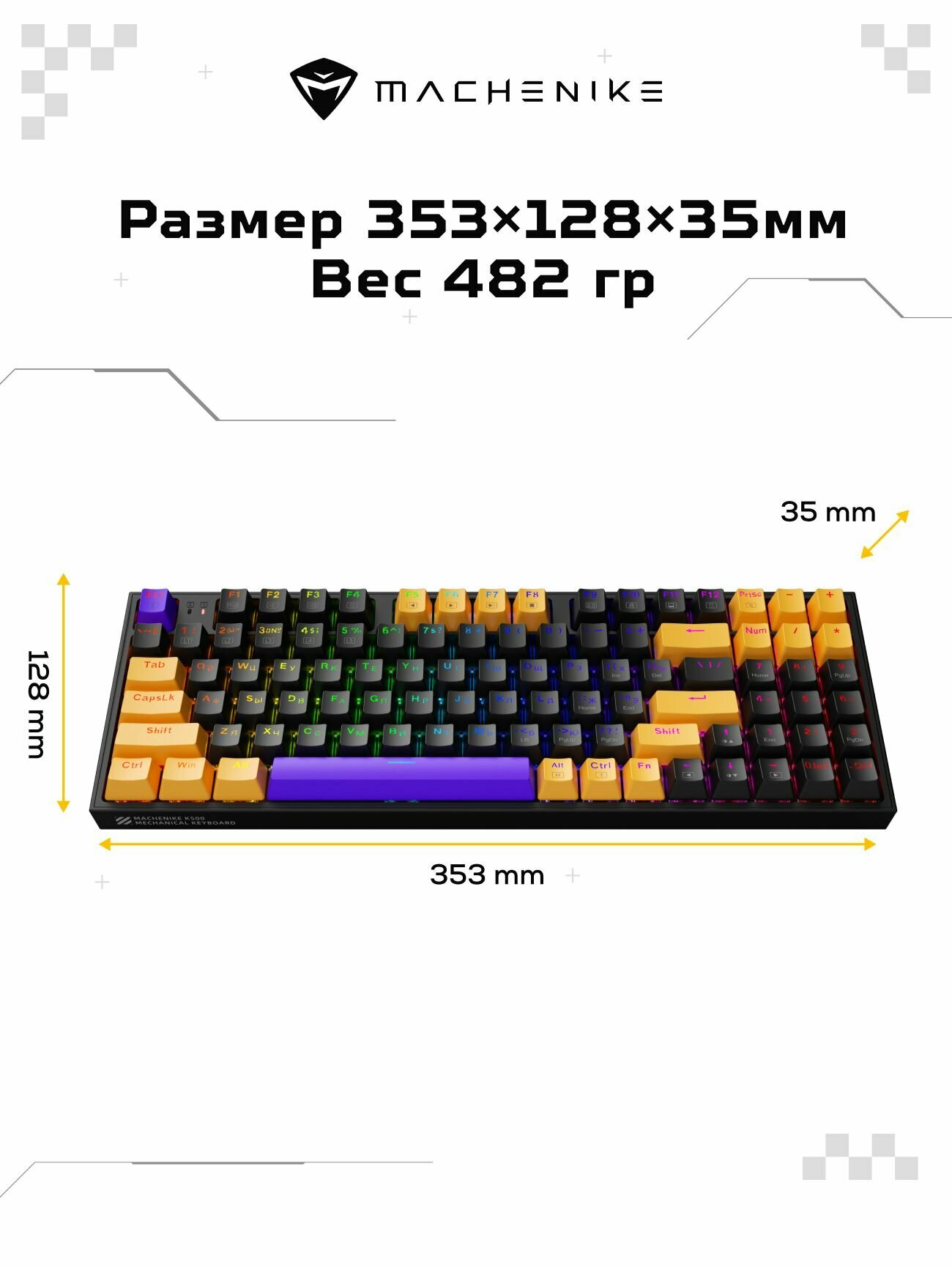 Machenike K500-B94 Onyx — это не просто клавиатура, это инструмент для победы. Раскладка на 94 клавиши обеспечивает оптимальное сочетание компактности и функциональности, не жертвуя удобством и эргономикой.