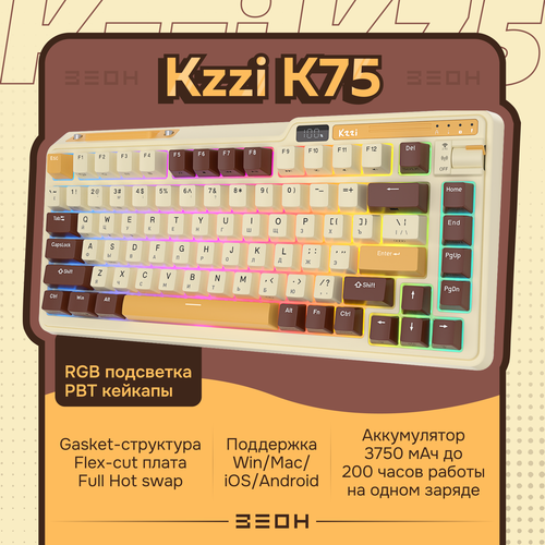 Клавиатура Kzzi K75 PRO Mousse Kzzi Eternity tactile switch, Type C-C-A/Bluetooth/Wi-Fi, 3750мАч, Наклейки с русским макетом: сравнение цен, характеристики, фото, актуальное наличие и цены.