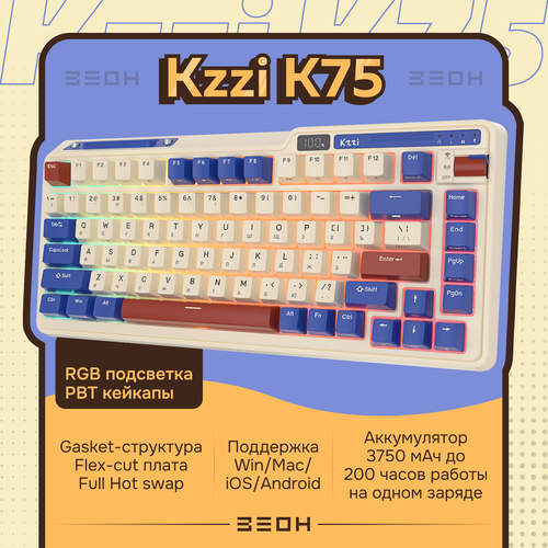 Клавиатура Kzzi K75 PRO Rhine Kzzi Eternity tactile switch, Type C-C-A/Bluetooth/Wi-Fi, 3750мАч, Наклейки с русским макетом: сравнение цен, характеристики, фото, актуальное наличие и цены.