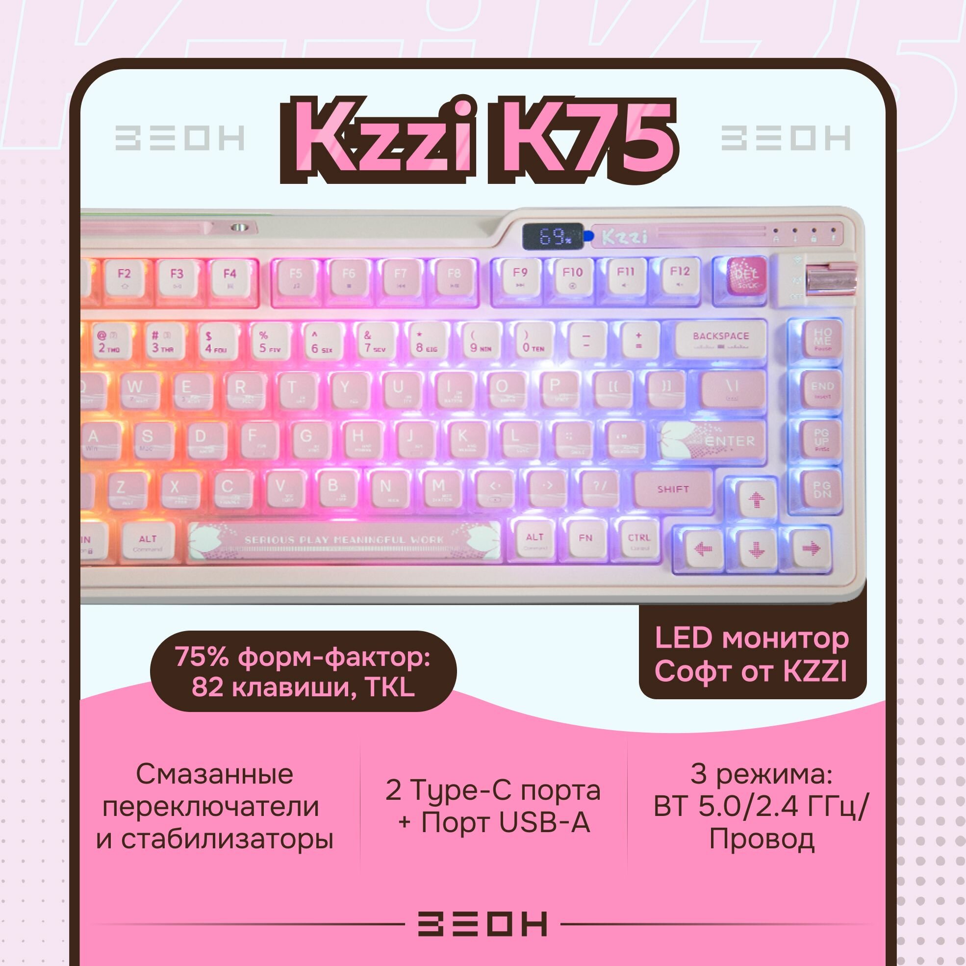 Клавиатура Kzzi K75 PRO Sakura Pink: сравнение цен, характеристики, фото, актуальное наличие и цены.