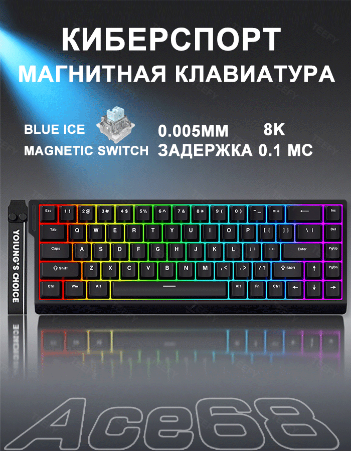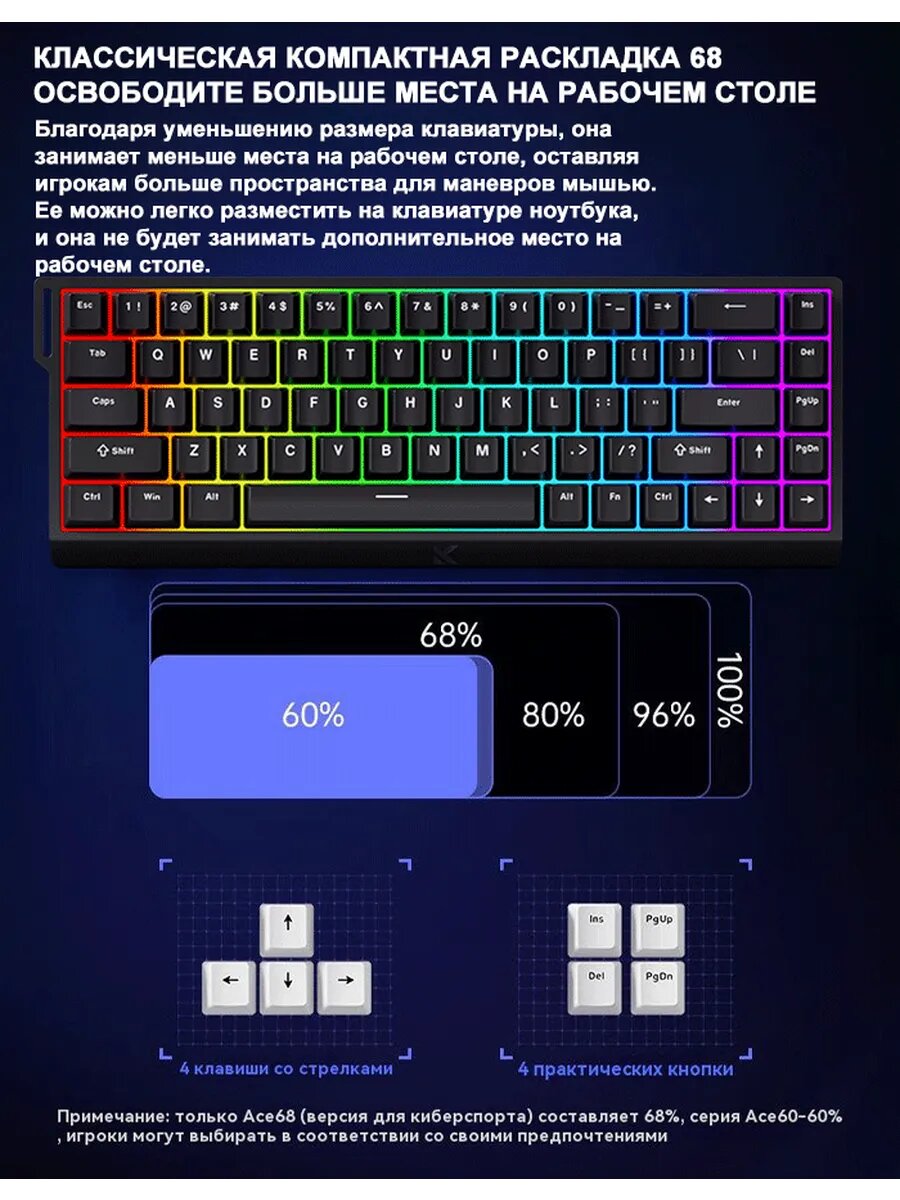 Клавиатура MCHOSE «ACE68», магнитная, проводная, 68 клавиш, RGB-подсветка: сравнение цен, характеристики, фото, актуальное наличие и цены.