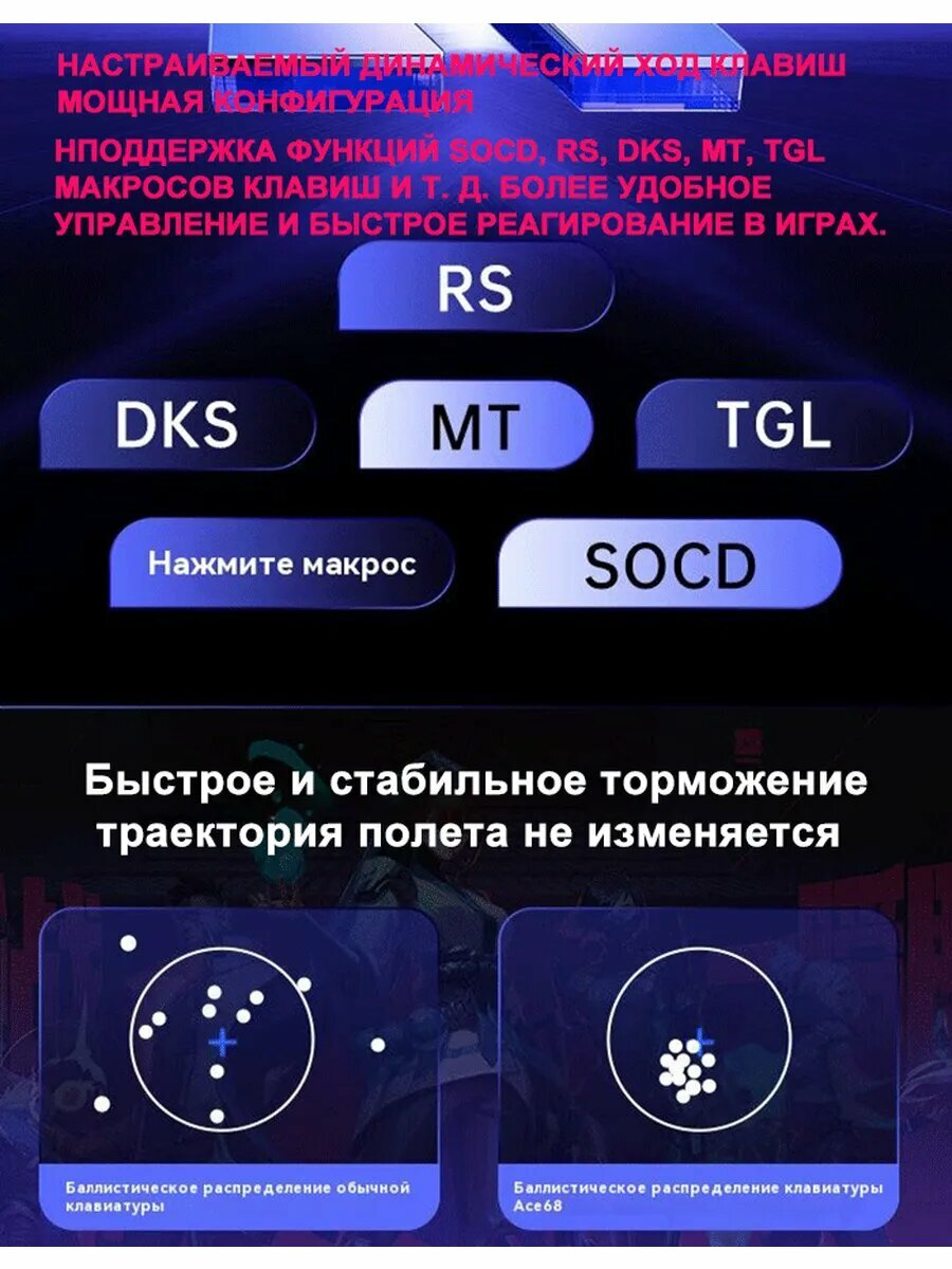 Купить Клавиатура MCHOSE «ACE68», магнитная, проводная, 68 клавиш, RGB-подсветка с доставкой по всей России.