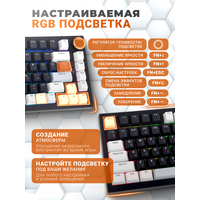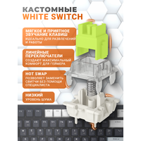 Клавиатура оснащена кастомными свитчами, обеспечивающими чёткий отклик, плавный ход и ресурс до 50 миллионов нажатий. Поддержка Hot-swap позволяет менять переключатели без пайки, настраивая клавиатуру под свои предпочтения.