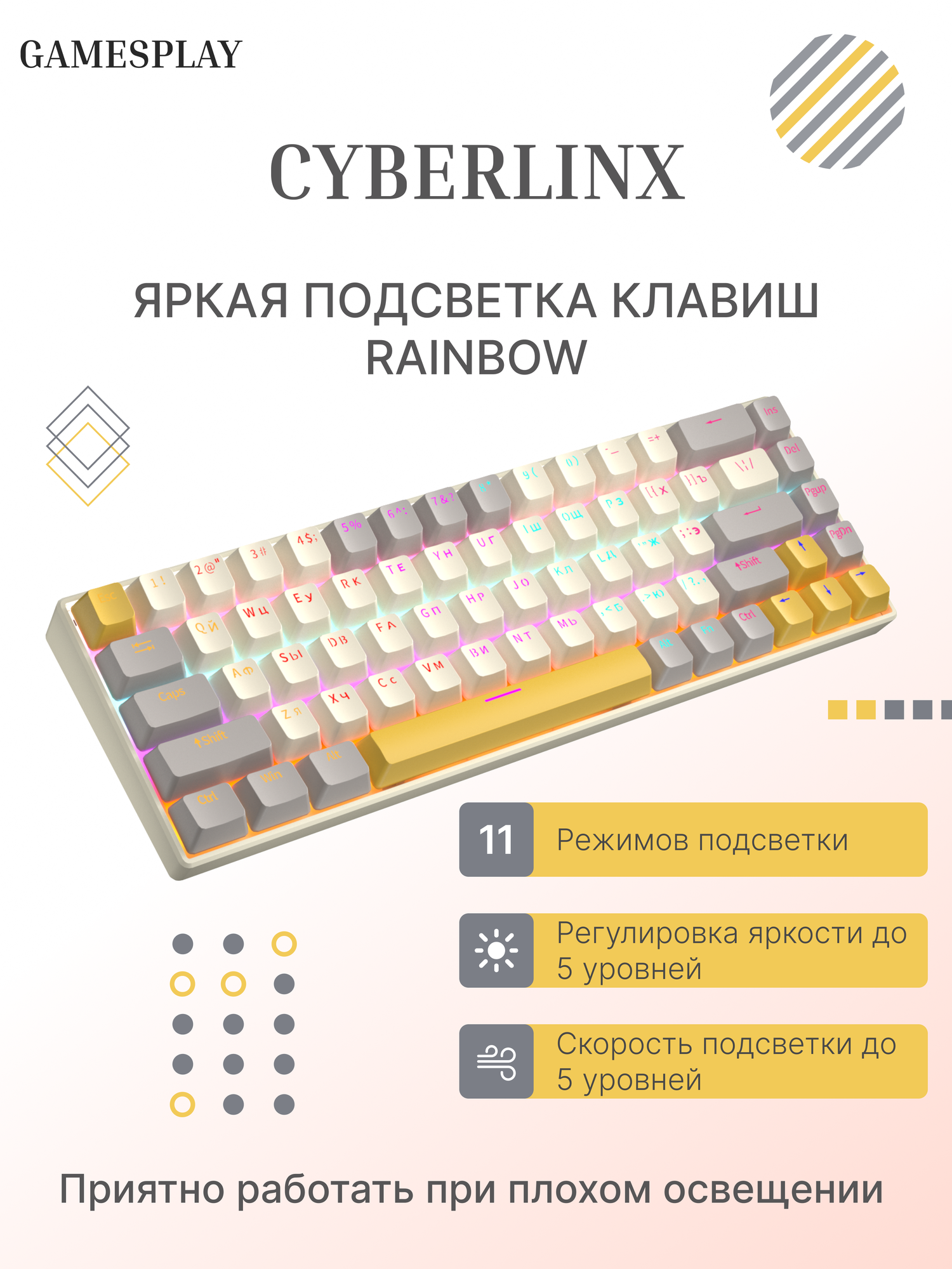 Купить Клавиатура механическая(60%) Cyberlynx с подсветкой, русская раскладка с доставкой по всей России. Клавиатура механическая(60%) Cyberlynx с подсветкой, русская раскладка: сравнение цен, характеристики, фото, актуальное наличие и цены.