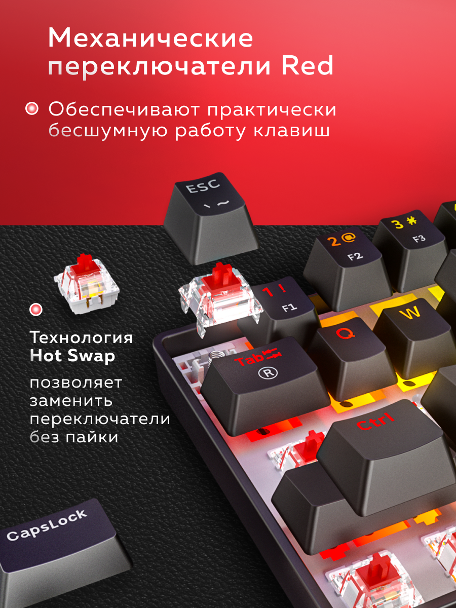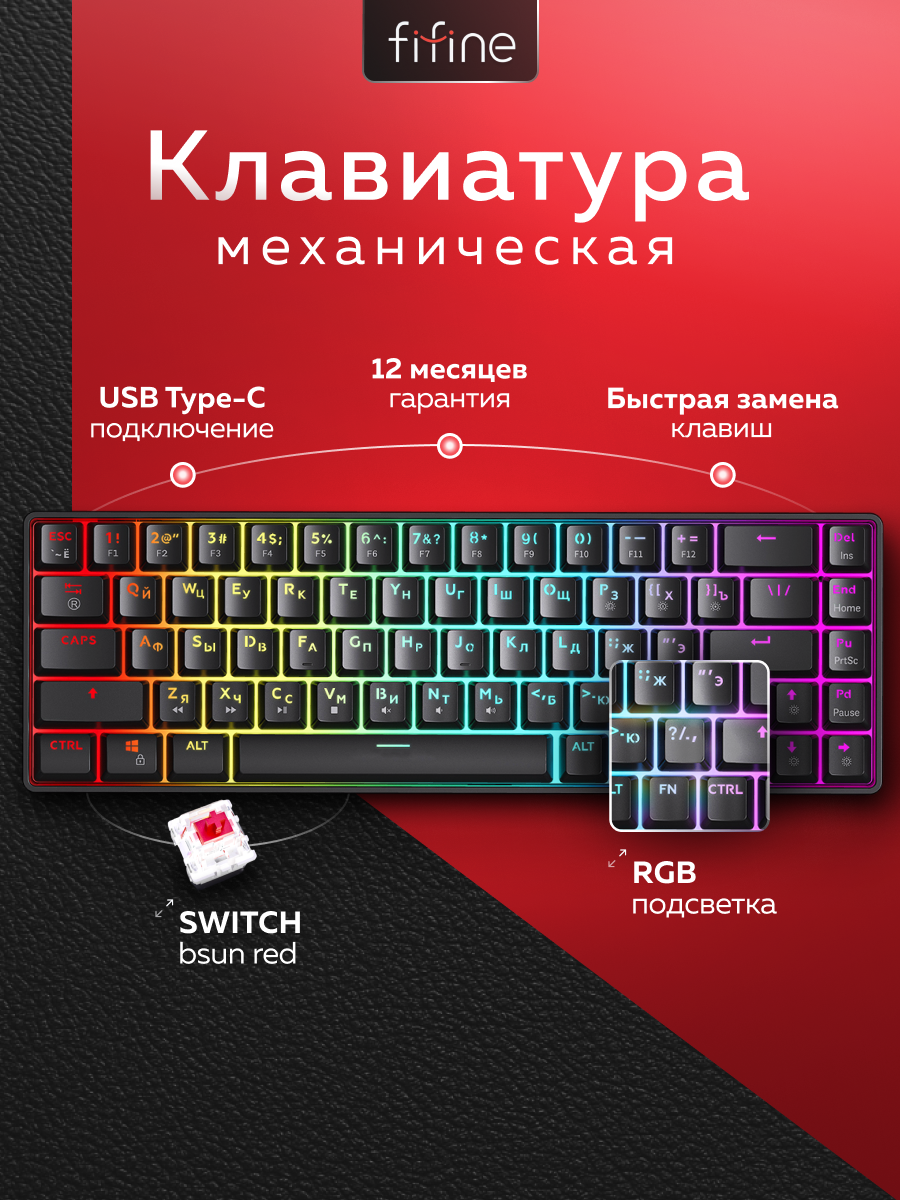 Клавиатура механическая игровая Fifine GK1 (Black) / Hot-Swap / Red switch / русская раскладка: сравнение цен, характеристики, фото, актуальное наличие и цены.