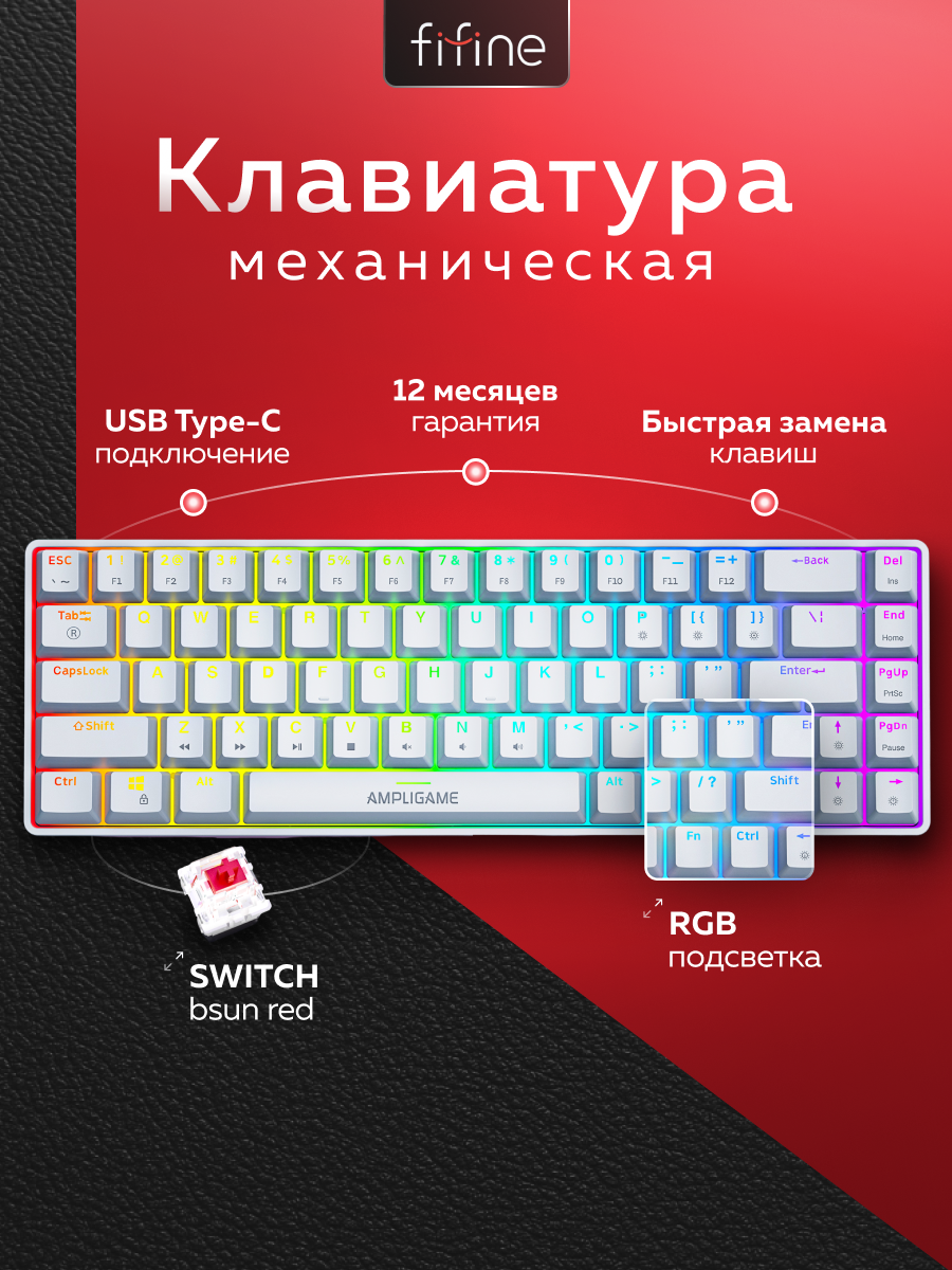 Клавиатура механическая игровая Fifine GK1 (White) / Hot-Swap / Red switch / русская раскладка: сравнение цен, характеристики, фото, актуальное наличие и цены.