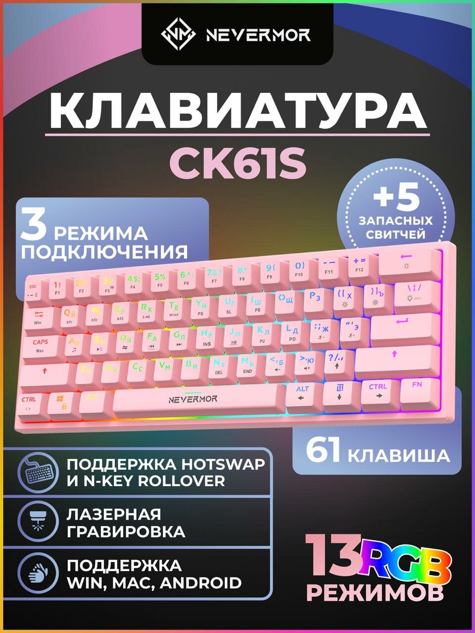 Клавиатура механическая Nevermor проводная/Bluetooth,2.4G СK61S Red Switch: сравнение цен, характеристики, фото, актуальное наличие и цены.