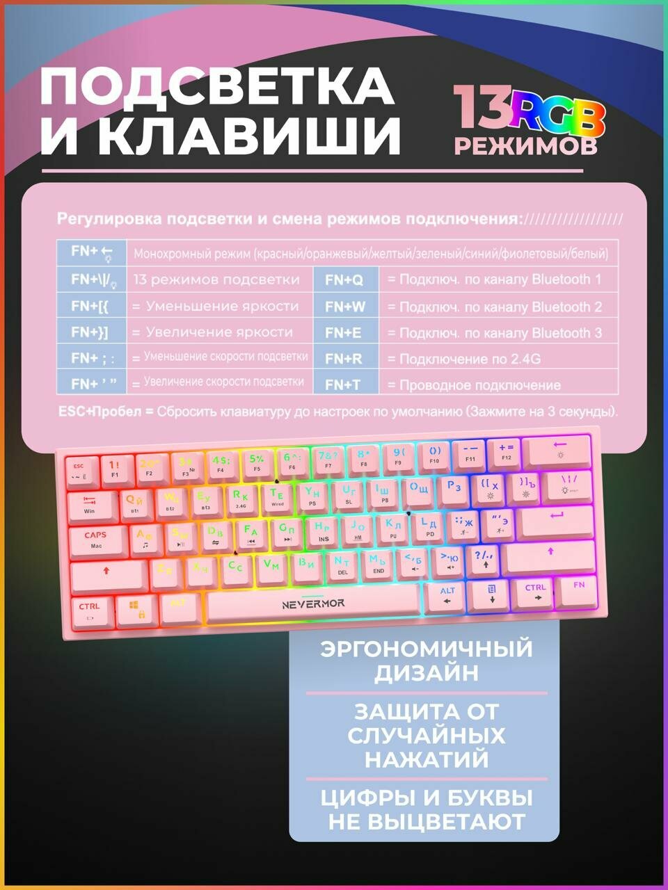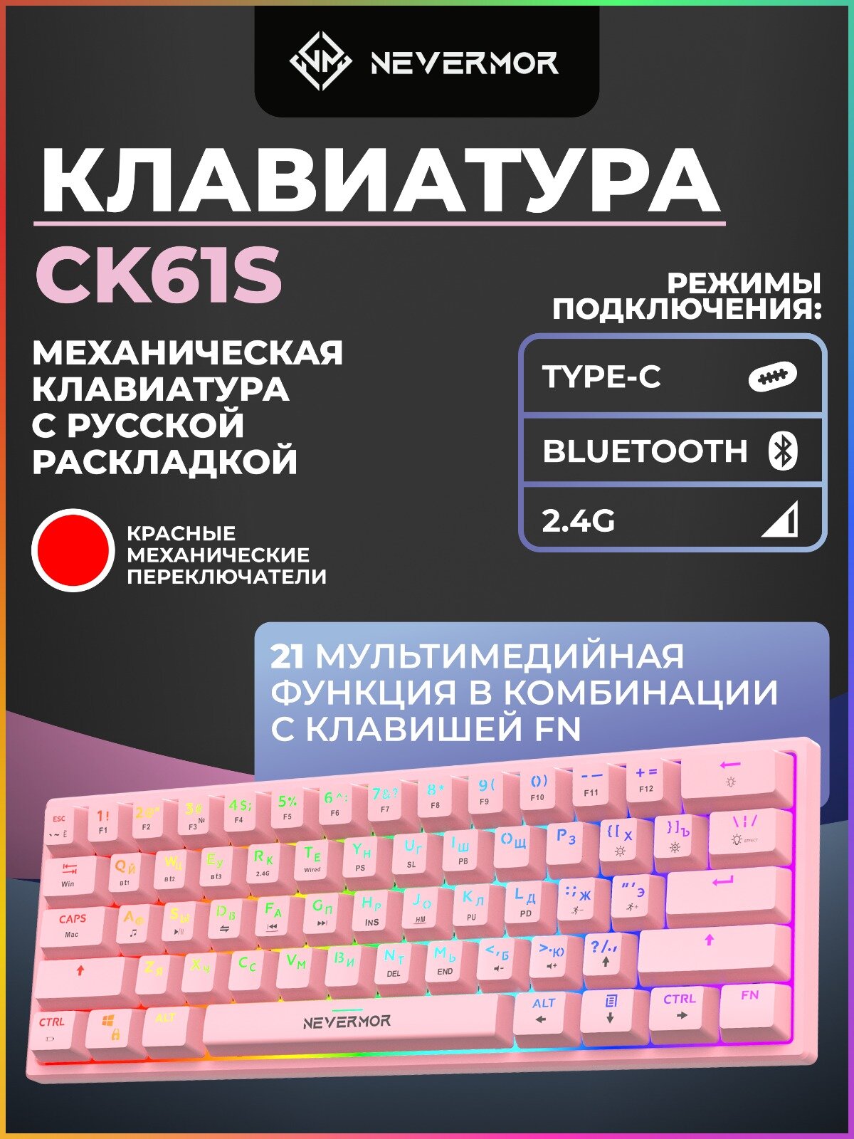 Купить Клавиатура механическая Nevermor проводная/Bluetooth,2.4G СK61S Red Switch с доставкой по всей России.