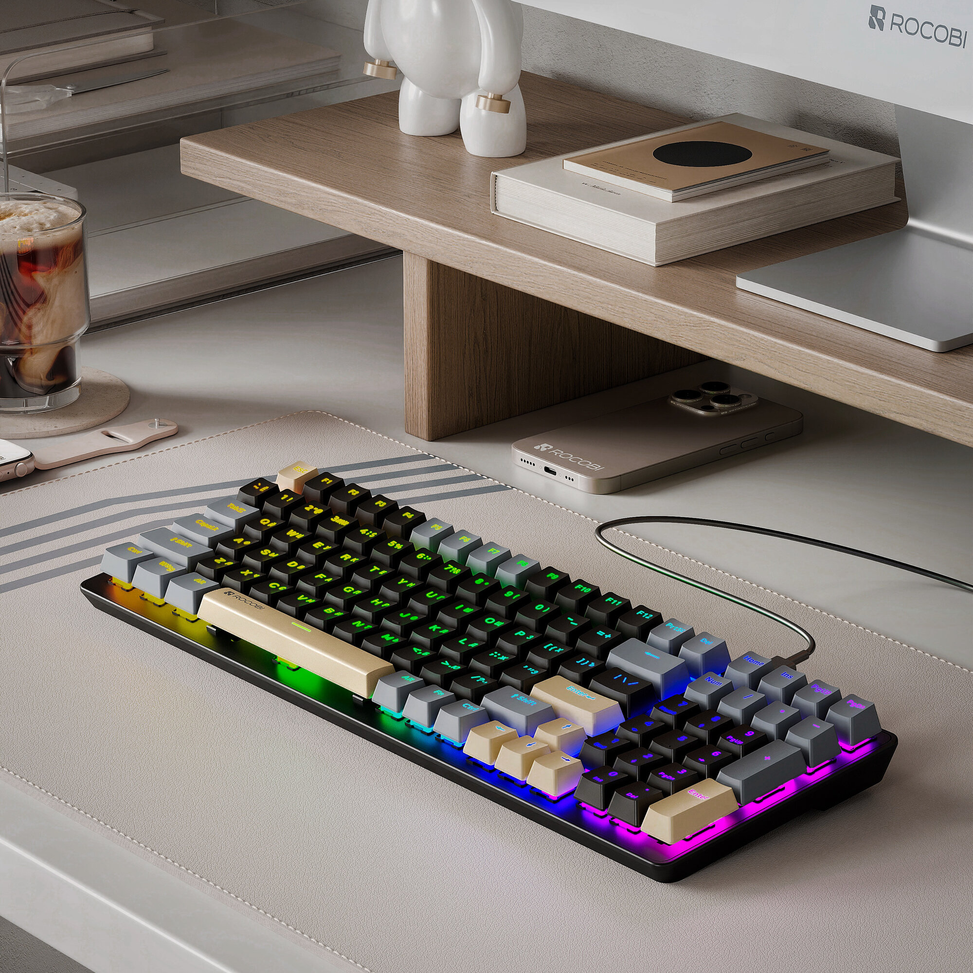 Клавиатура механическая ROCOBI R1 игровая с подсветкой русская проводная для компьютера ноутбука Gaming/game keyboard usb светящаяся