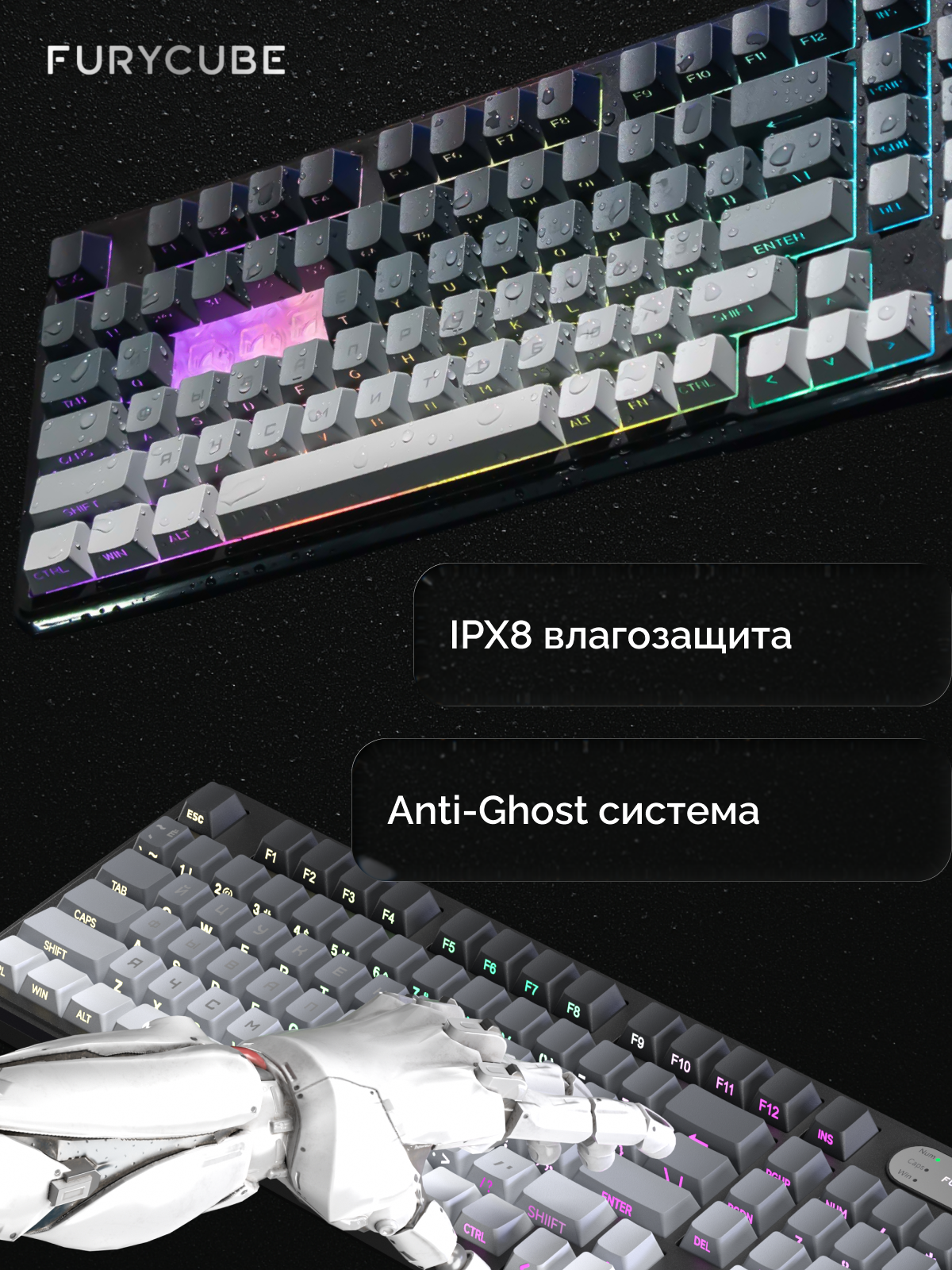 Клавиатура мембранная, Furycube IP98, проводная, RGB подсветка, водонепроницаемая, Numpad, розовый градиент, фиолетовый: сравнение цен, характеристики, фото, актуальное наличие и цены.
