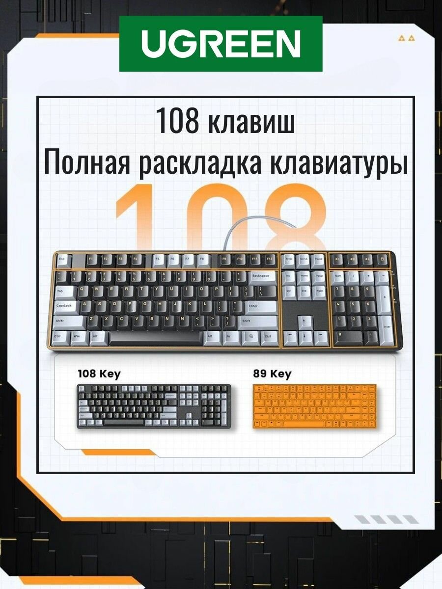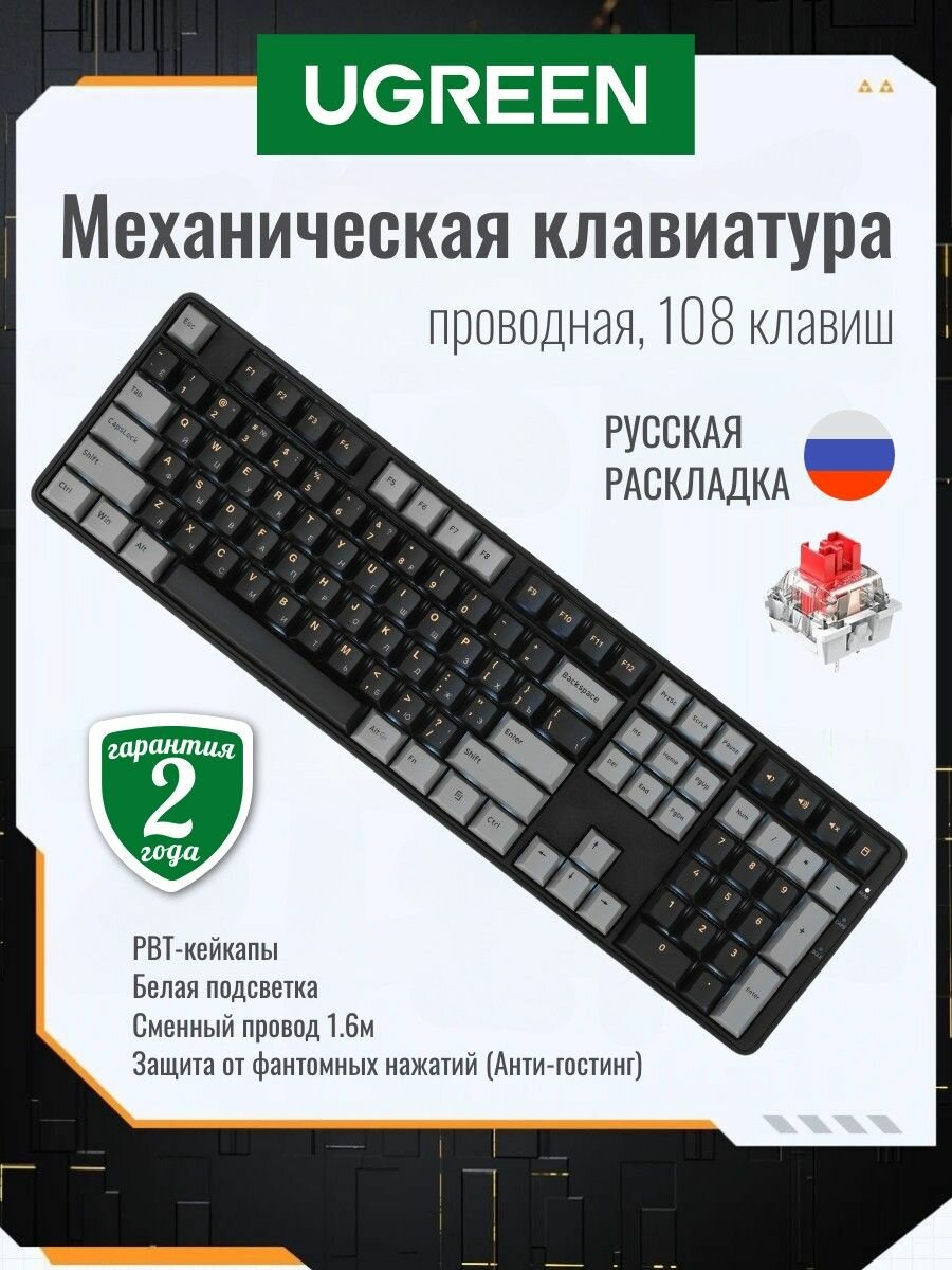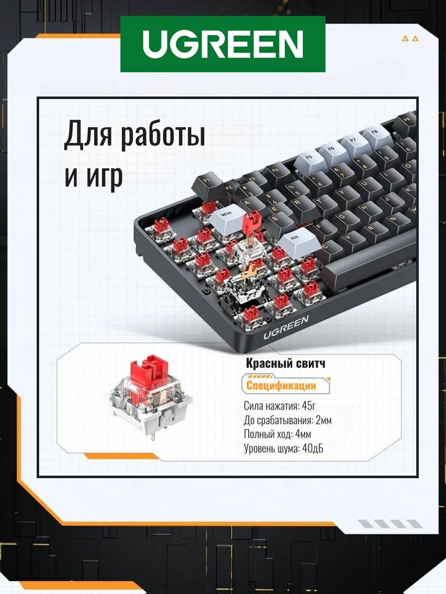 Клавиатура проводная механическая UGREEN KU103 (35214) USB RU. Длина кабеля: 1,6м. Цвет: черный: сравнение цен, характеристики, фото, актуальное наличие и цены.