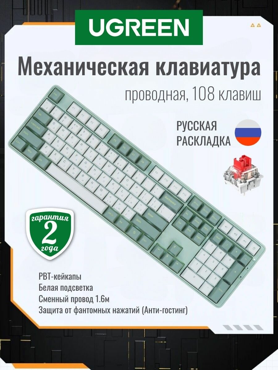 Клавиатура проводная механическая UGREEN KU103 (55817) RU. Длина кабеля: 1,6м. Цвет: зеленый: сравнение цен, характеристики, фото, актуальное наличие и цены.