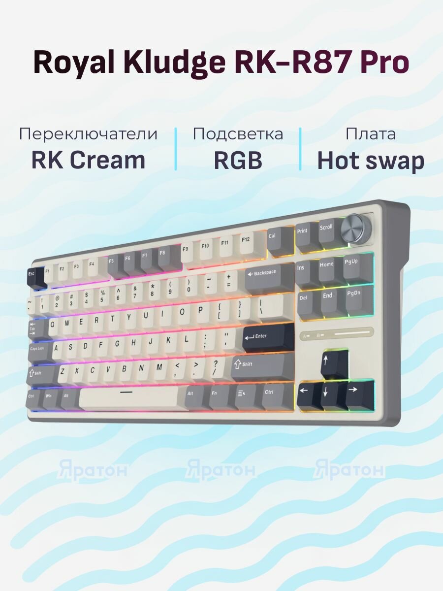 Игровая механическая клавиатура Royal Kludge RK R87 Pro (80%) — проводная, 87 клавиш, Gasket Mount, профиль PBT Cherry, цвет Half Grey, линейные переключатели (RK Cream): сравнение цен, характеристики, фото, актуальное наличие и цены.