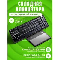 Купить Клавиатура складная мини-слим Bluetooth + Тачпад (TouchPad) FK055 черная black Русская раскладка Кожа NumPad с доставкой по всей России.