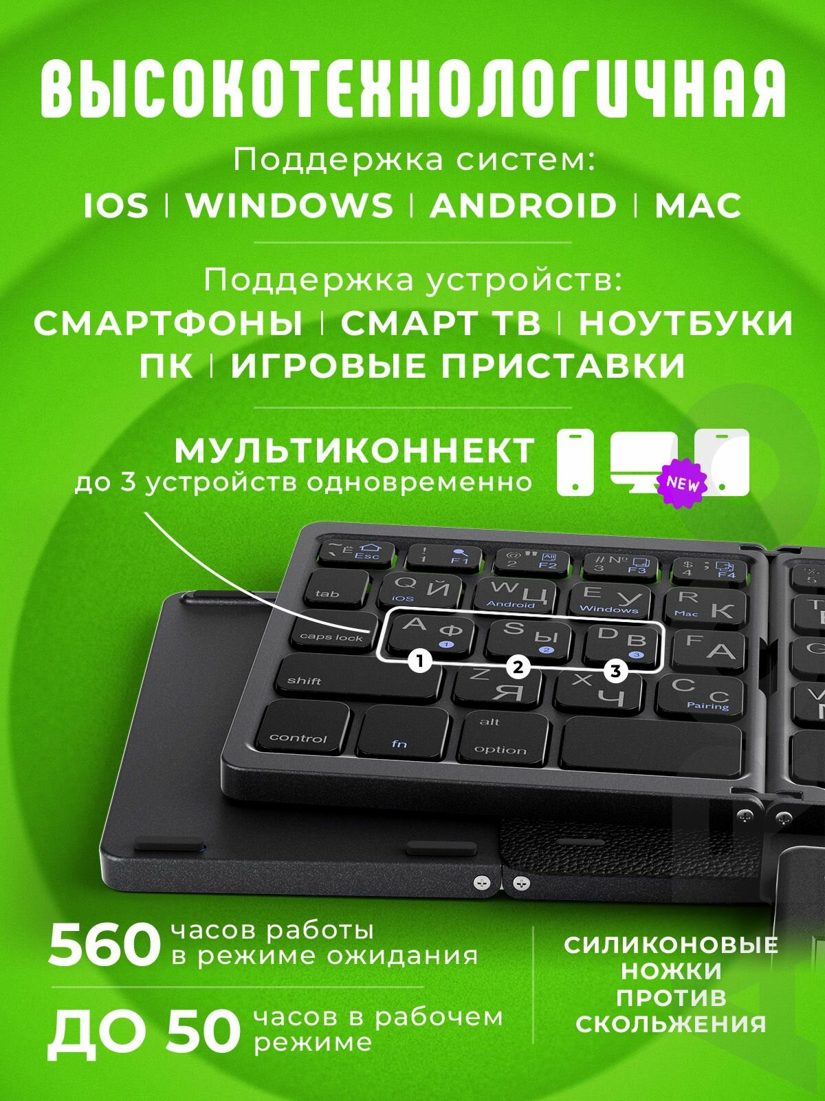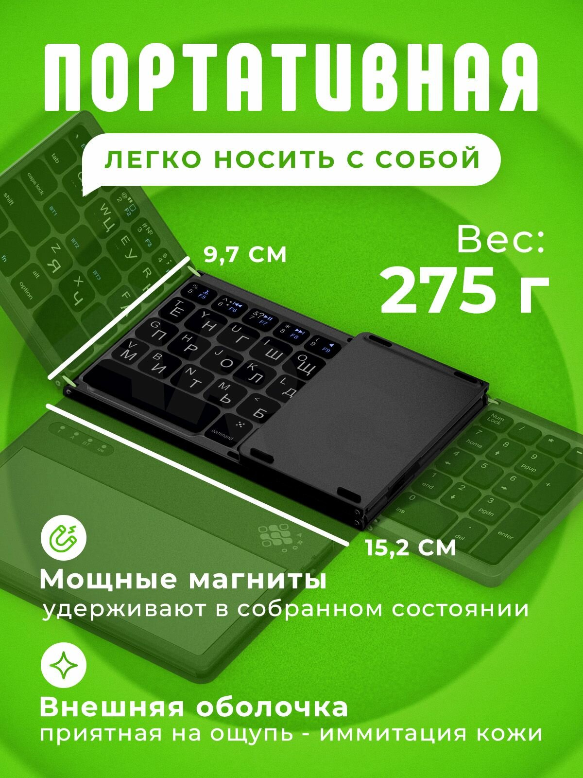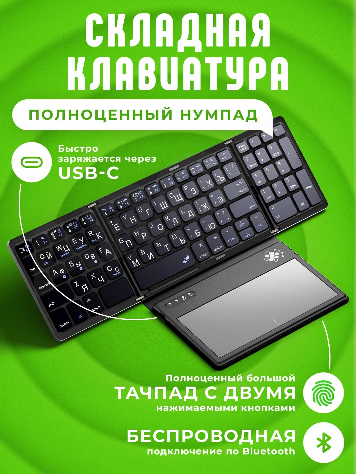 Клавиатура складная мини-слим Bluetooth + Тачпад (TouchPad) FK055 черная black Русская раскладка Кожа NumPad: сравнение цен, характеристики, фото, актуальное наличие и цены.