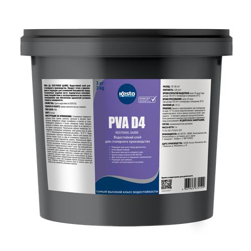 Купить Клей ПВА Kesto Kestokol D4000 D4 3 кг с доставкой по всей России. Клей ПВА Kesto Kestokol D4000 D4 3 кг: сравнение цен, характеристики, фото, актуальное наличие и цены.