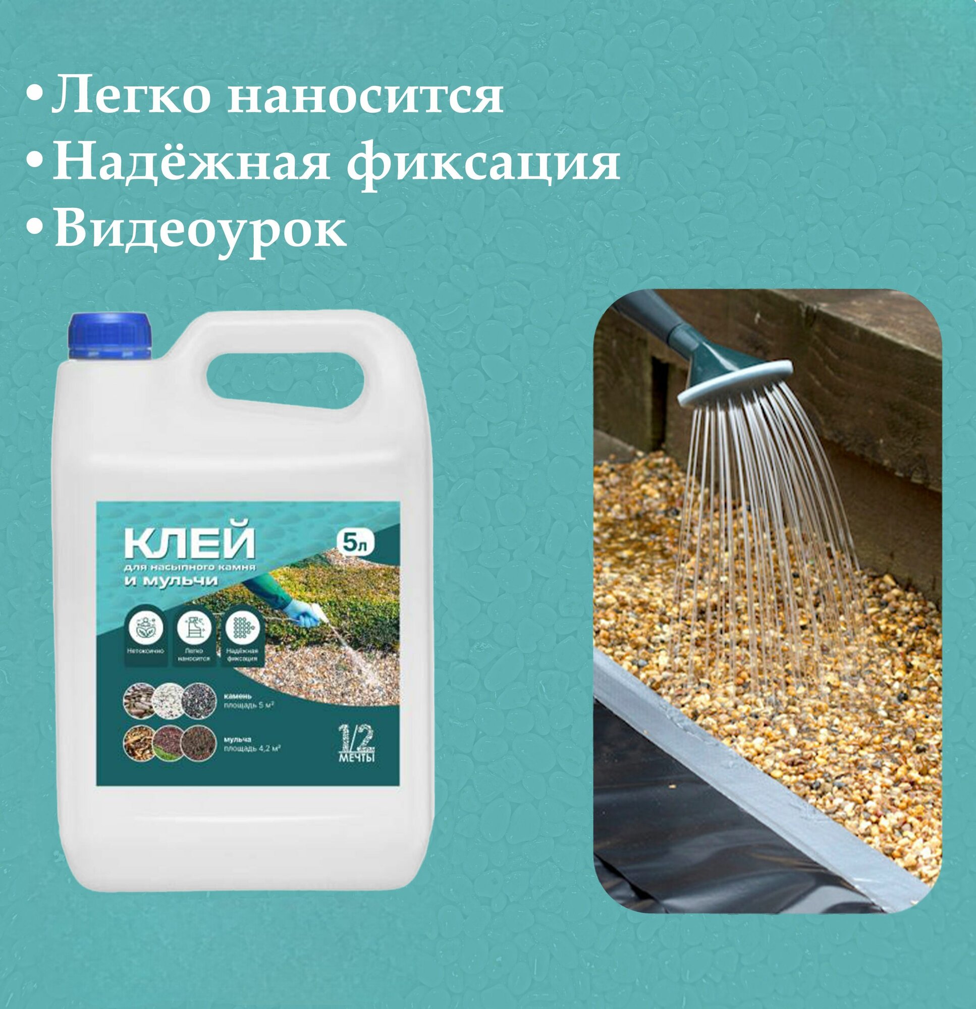 Клей для скрепления камня, для щебня, для гальки, мульчи для пролива. Канистра 5л - на 5м2 щебня.