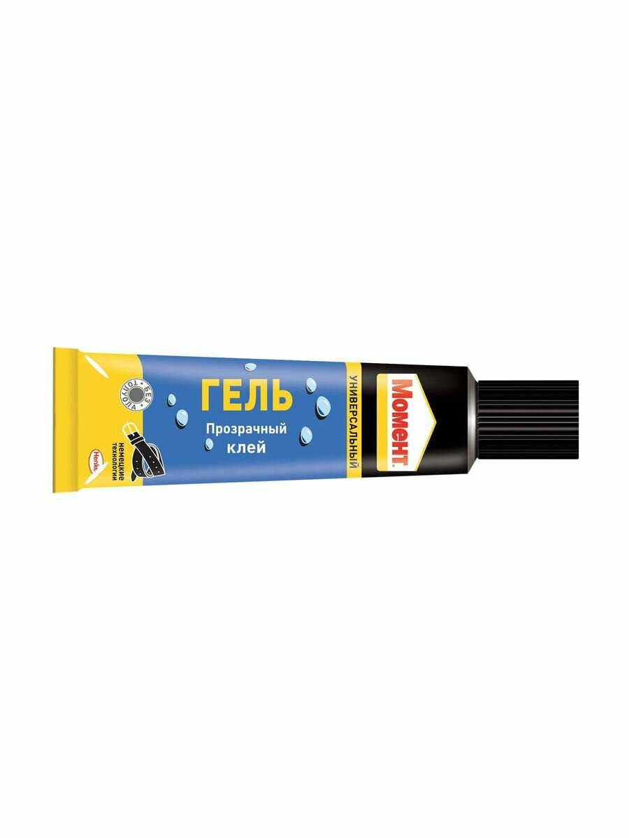 Клей-гель универсальный момент, 30 мл, в шоу-боксе, 997778. Продается набором по (10 шт.) Гель Момент подходит для склеивания как мягкого, так и жесткого ПВХ, полистирола, оргстекла и других видов пластика, а также дерева, резины, кожи, пробки, ткани, поролона, бумаги, картона, стекла, фарфора, керамики, вспененных материалов, металлов и др. Обладает высокой устойчивостью к воздействию разбавленных кислот и щелочей. Не растекается и не капает даже при нанесении на вертикальные поверхности. Не рекомендуется применять для склеивания посуды, контактирующей с пищей, стиропора, полиэтилена и полипропилена.