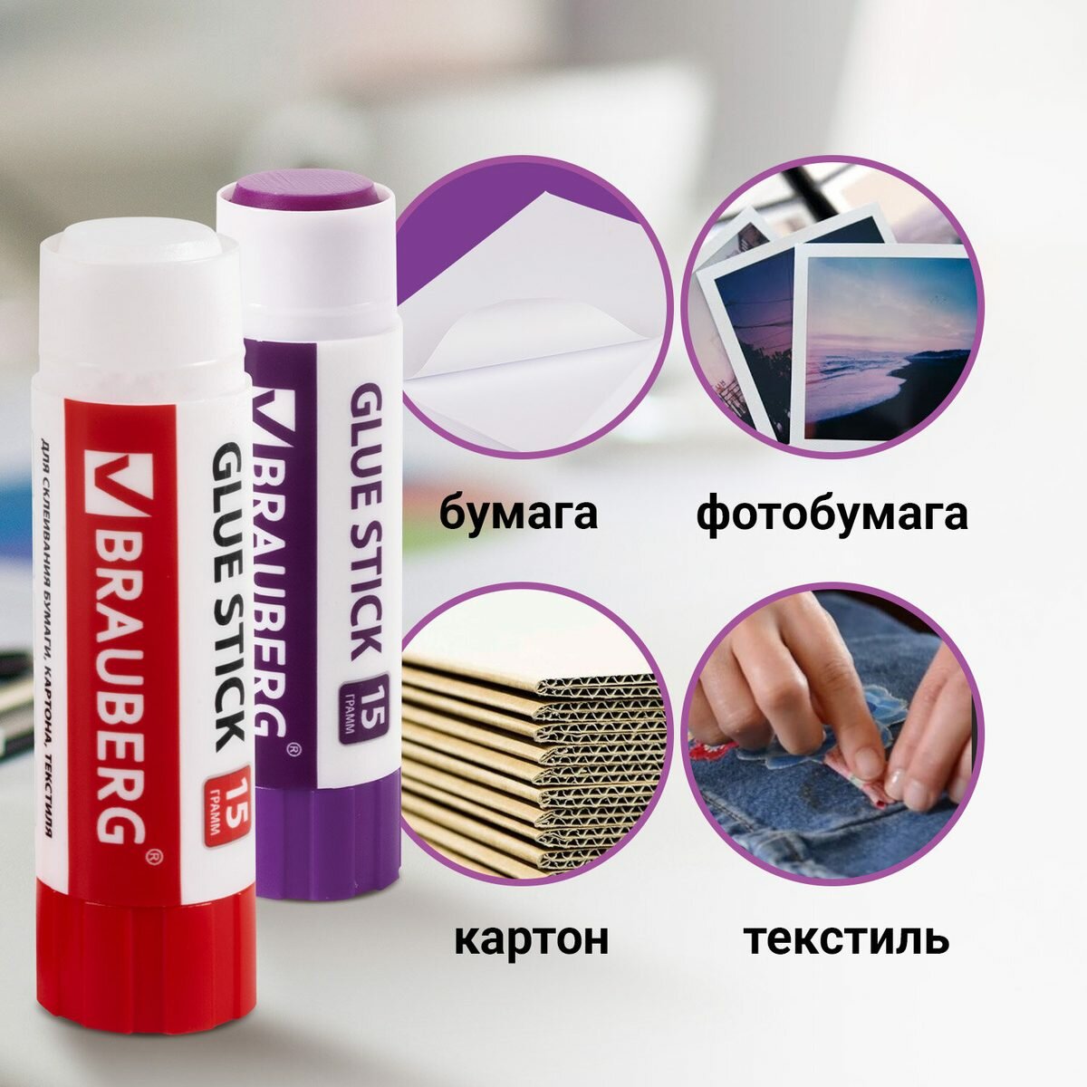 Клей-карандаш Brauberg «2+1» обесцвечивающийся, 15г, набор 3шт, блистер (229474), 12 уп.: сравнение цен, характеристики, фото, актуальное наличие и цены.