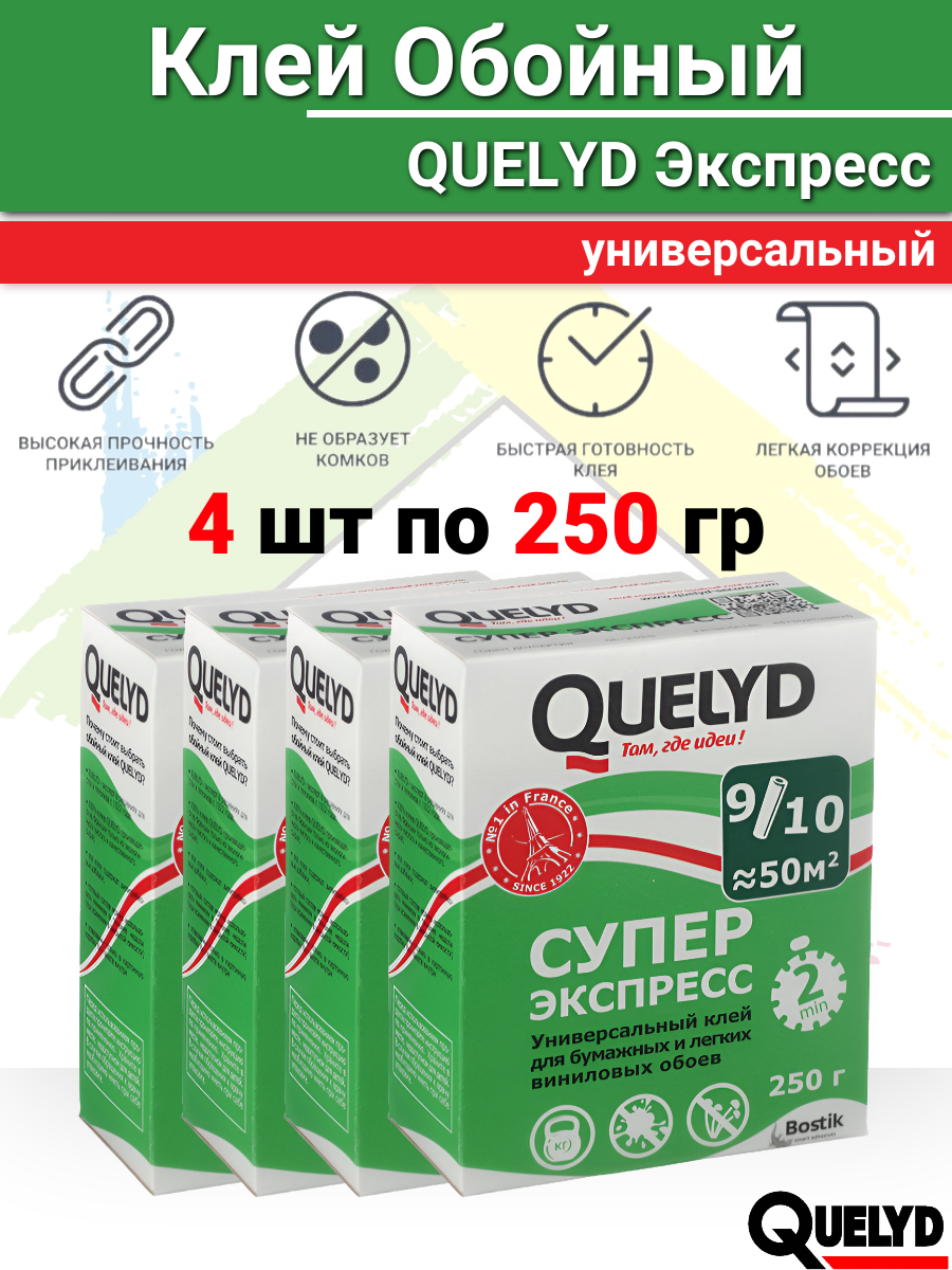 Купить Клей Обойный QUELYD Экспресс 250 гр 4 шт с доставкой по всей России. Клей Обойный QUELYD Экспресс 250 гр 4 шт: сравнение цен, характеристики, фото, актуальное наличие и цены.
