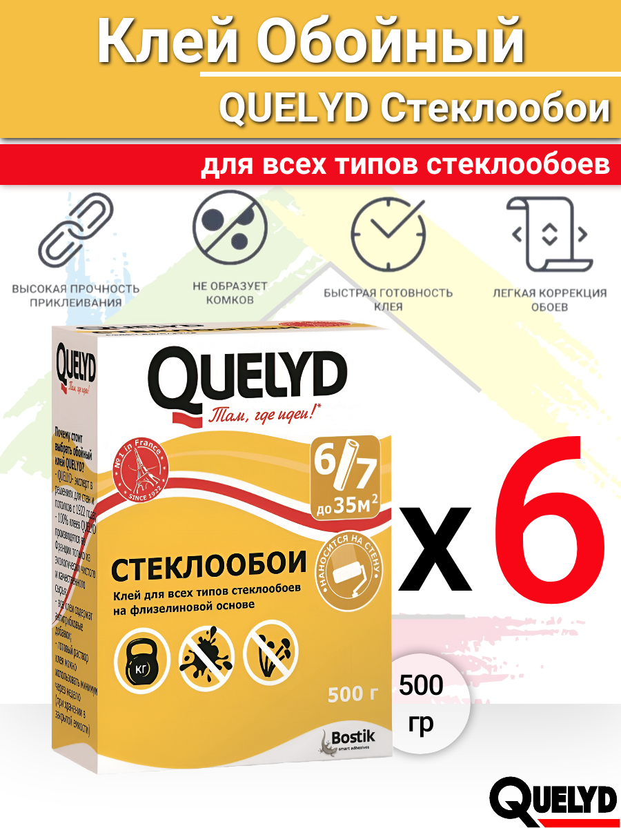 Купить Клей для обоев QUELYD Стеклообои 500 гр 6 шт / для обоев на флизелиновой основе с доставкой по всей России.