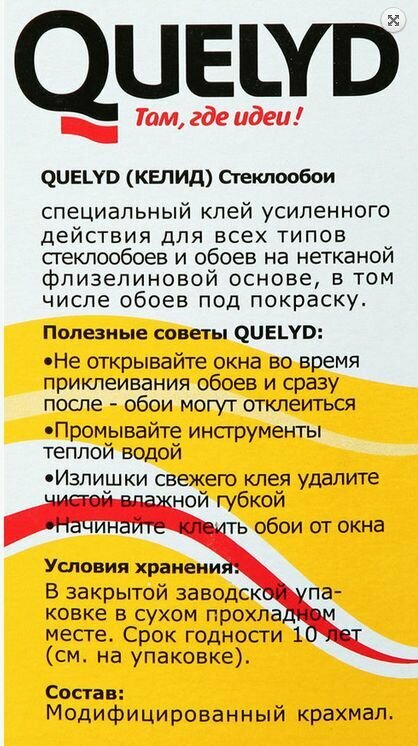 Клей для обоев QUELYD Стеклообои 500 гр 9 шт / для обоев на флизелиновой основе: сравнение цен, характеристики, фото, актуальное наличие и цены.