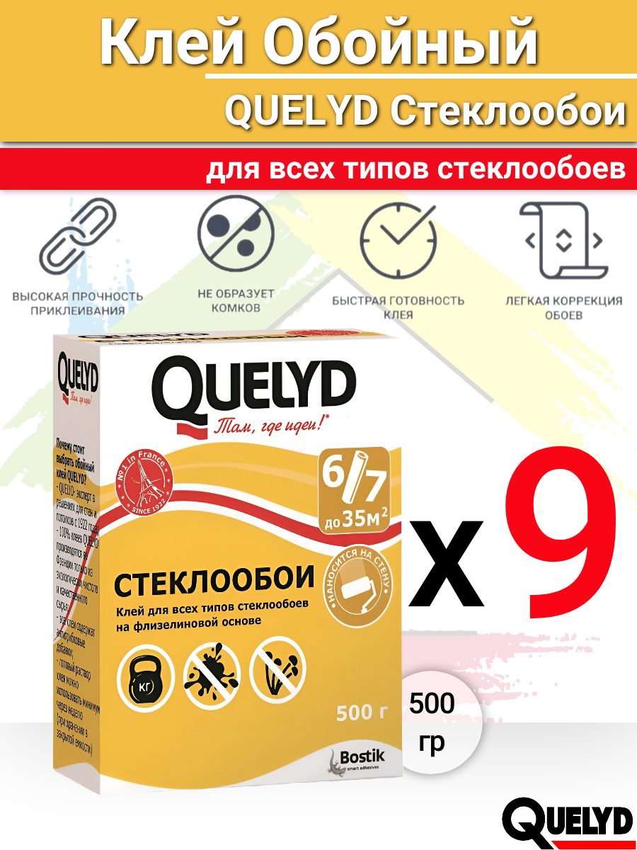 Купить Клей для обоев QUELYD Стеклообои 500 гр 9 шт / для обоев на флизелиновой основе с доставкой по всей России.