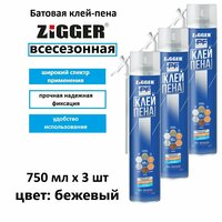 Клей-пена бытовая ZIGGER PF всесезонная, 750 мл, 800 г, 3 шт