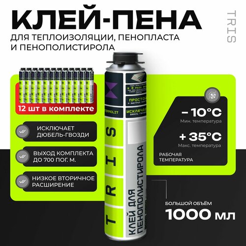 Клей-пена TERMOLIT для пенополистирола и пенопласта 12 шт / клей строительный для теплоизоляции, TRIS