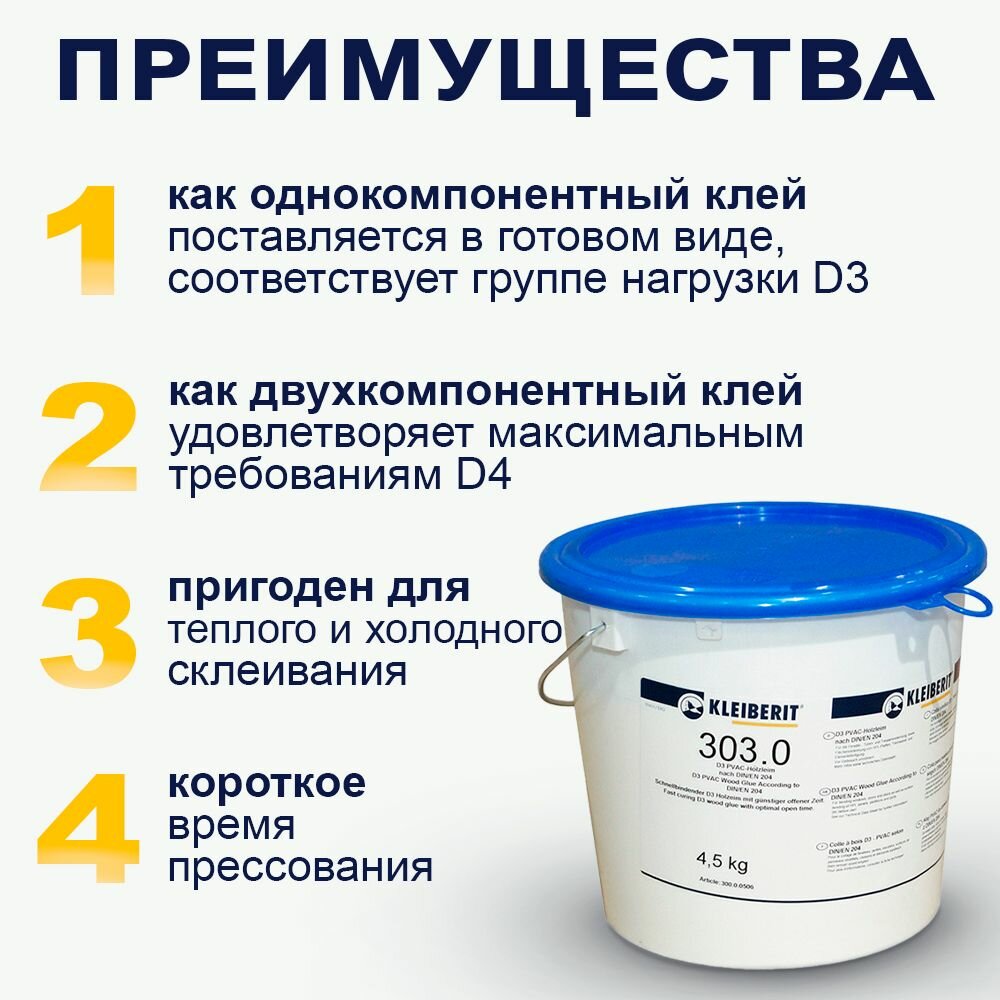Купить Клей Kleiberit 303.0 для дерева ПВА D3/D4, 4.5 кг с доставкой по всей России.