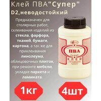 Купить Клей ПВА Новохим Супер 1 кг, 4 шт с доставкой по всей России.