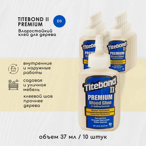 TITEBOND II Premium Wood Glue - самый популярный клей в линейке клеев ПВА. Однокомпонентный клей, который удовлетворяет требованиям стандарта по водостойкости ANSI Тип II. Он идеален для наружного применения, включая садовую и уличную мебель, скворечники, почтовые ящики, столы для пикника и т. д.
