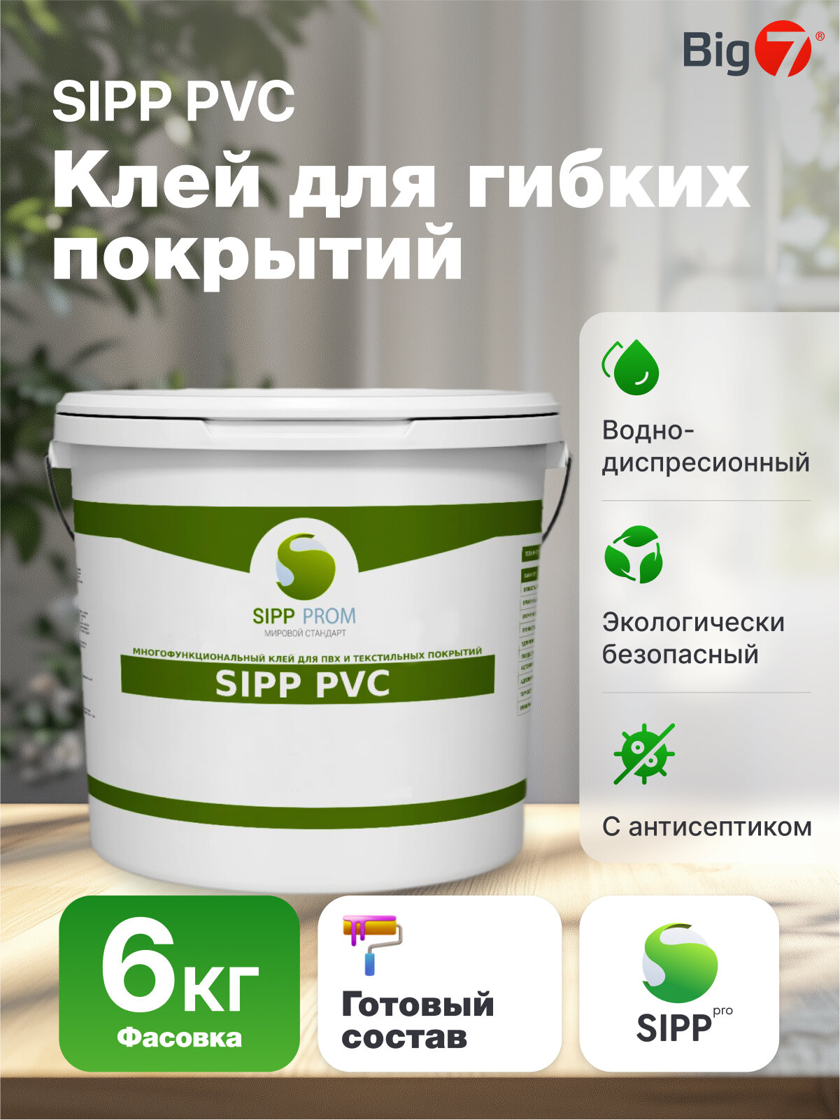 Клей SIPP PVC для гибких напольных покрытий экологически безопасный, водно-дисперсионный ,6 кг: сравнение цен, характеристики, фото, актуальное наличие и цены.