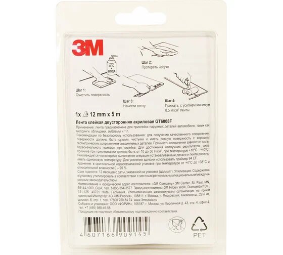 Купить Клейкая двусторонняя акриловая лента 3М GT6008F 12 мм х 5 м 4607166909145 с доставкой по всей России. Клейкая двусторонняя акриловая лента 3М GT6008F 12 мм х 5 м 4607166909145: сравнение цен, характеристики, фото, актуальное наличие и цены.