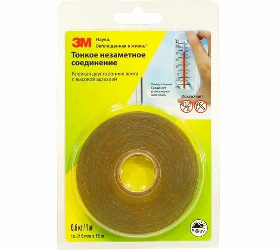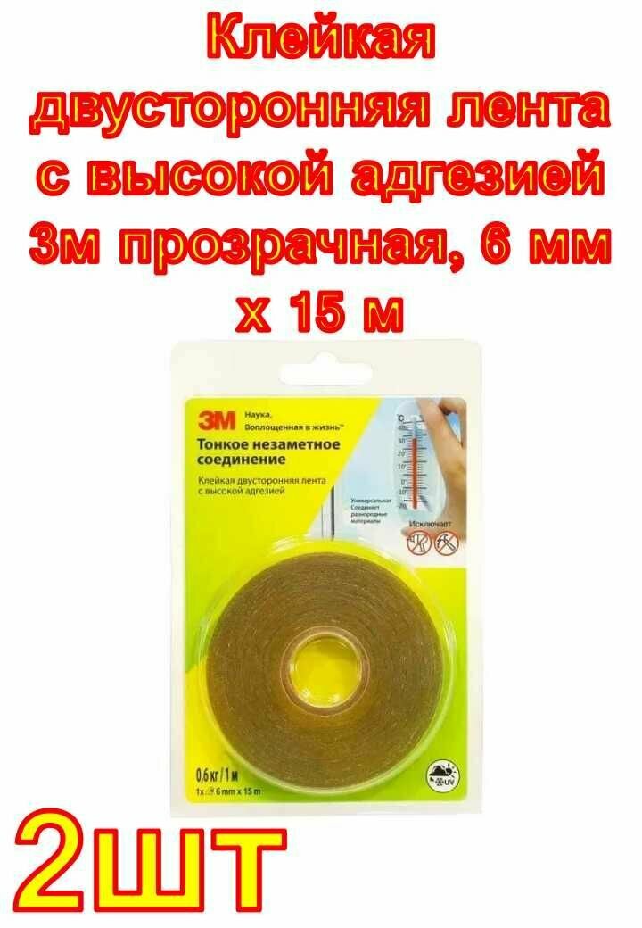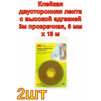 Клейкая двусторонняя лента с высокой адгезией 3М прозрачная, 6 мм х 15 м 2 шт.: сравнение цен, характеристики, фото, актуальное наличие и цены.