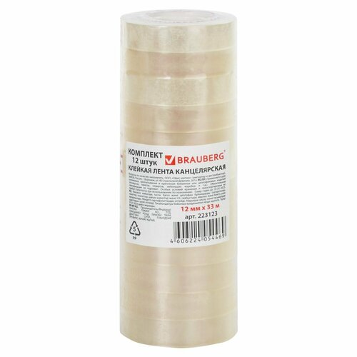 Клейкая лента (скотч) канцелярская Brauberg (12мм x 33м, 35мкм, прозрачная) набор 12шт. (223123), 25 уп.: сравнение цен, характеристики, фото, актуальное наличие и цены.