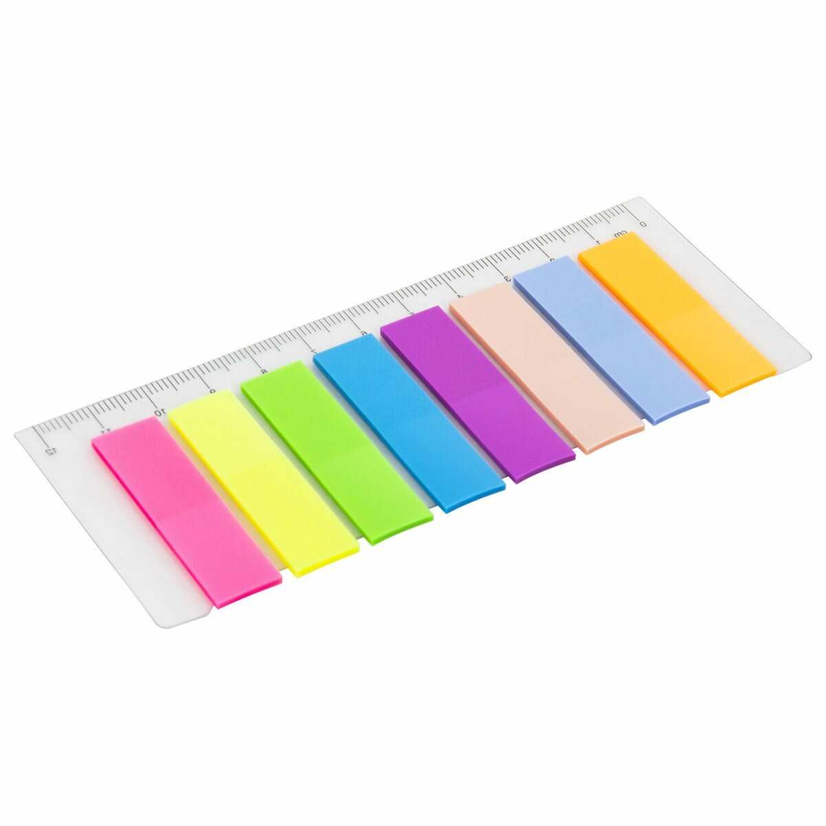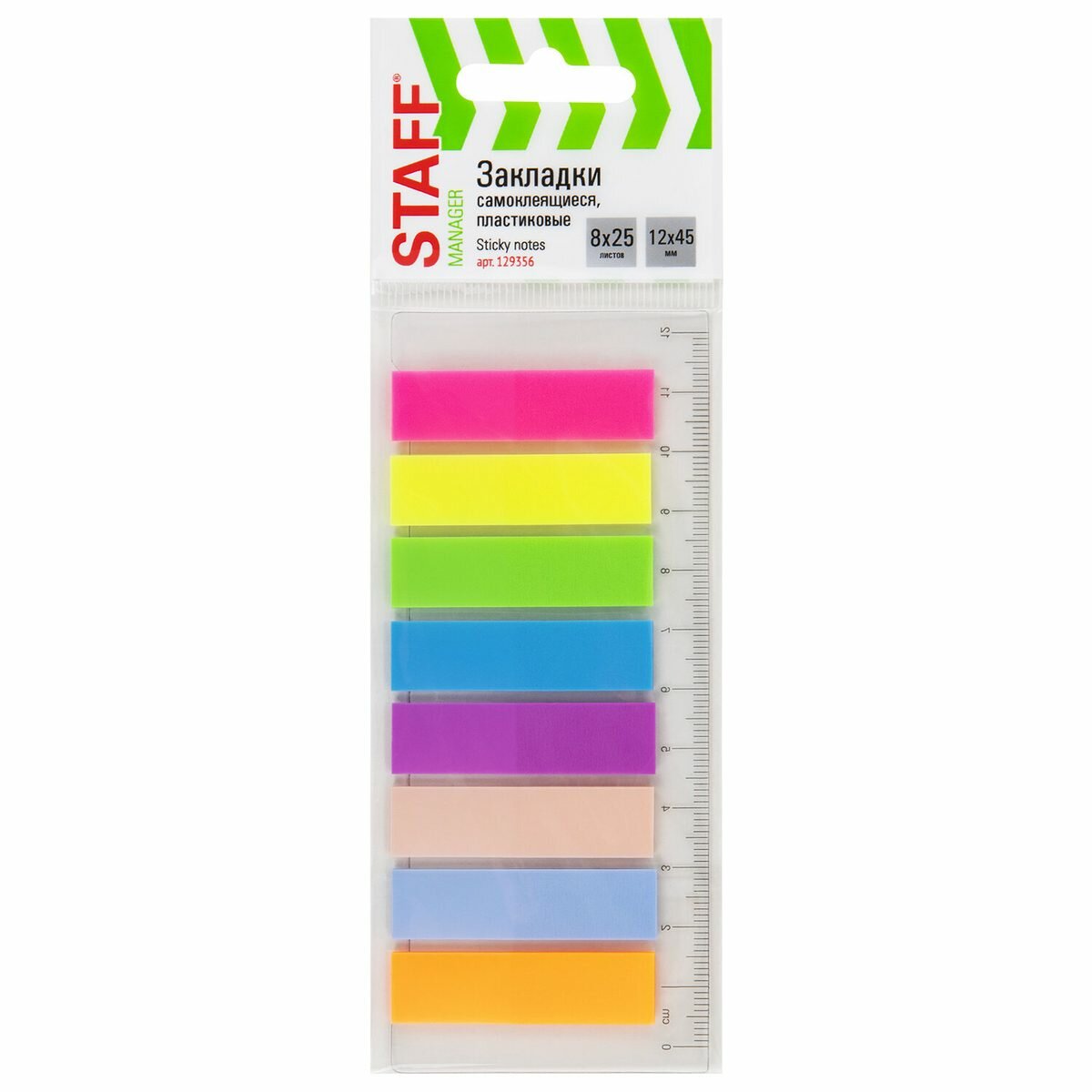 Купить Клейкие закладки пластиковые Staff, 8 цветов по 25л, 45х12мм, на пластиковой линейке 12см (129356), 24 уп. с доставкой по всей России.