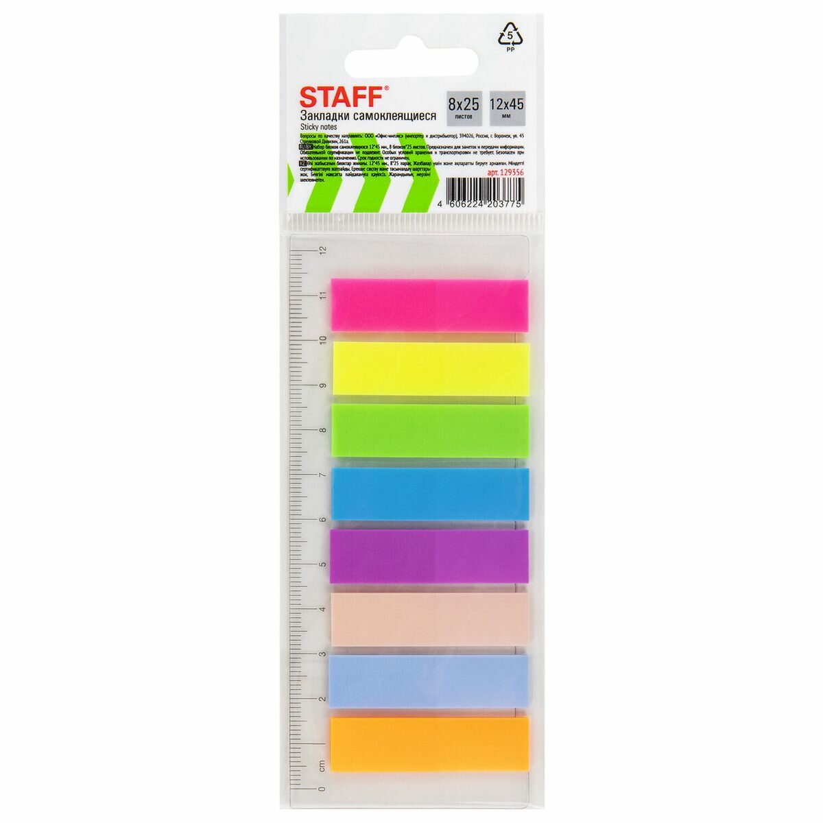 Клейкие закладки пластиковые Staff, 8 цветов по 25л, 45х12мм, на пластиковой линейке 12см (129356), 24 уп.: сравнение цен, характеристики, фото, актуальное наличие и цены.
