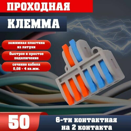 Купить Клемма для проводов соединительная(зажимная) 6-2 контакта, двусторонняя, тип WAGO (Ваго), 50 шт с доставкой по всей России. Клемма для проводов соединительная(зажимная) 6-2 контакта, двусторонняя, тип WAGO (Ваго), 50 шт: сравнение цен, характеристики, фото, актуальное наличие и цены.