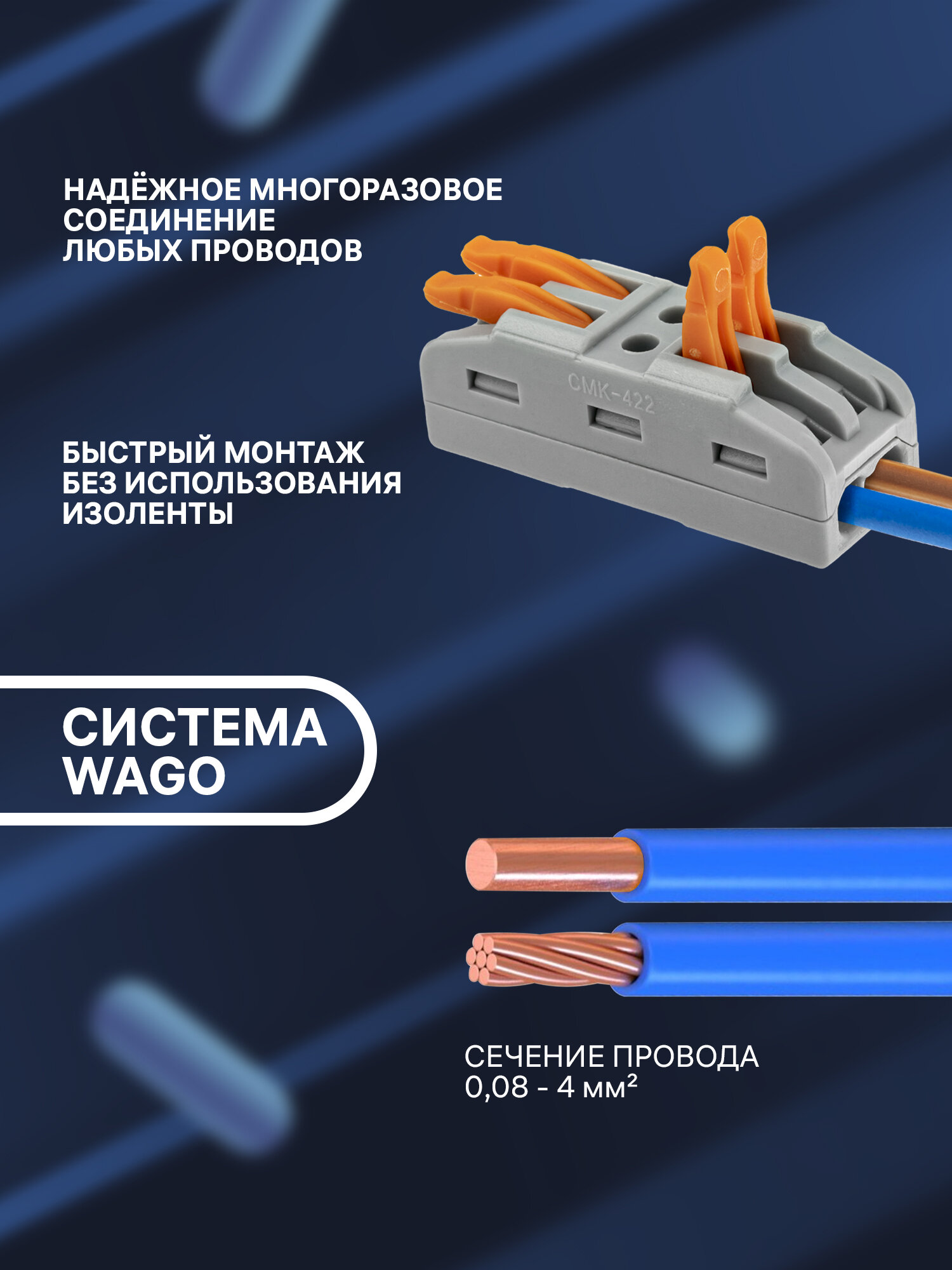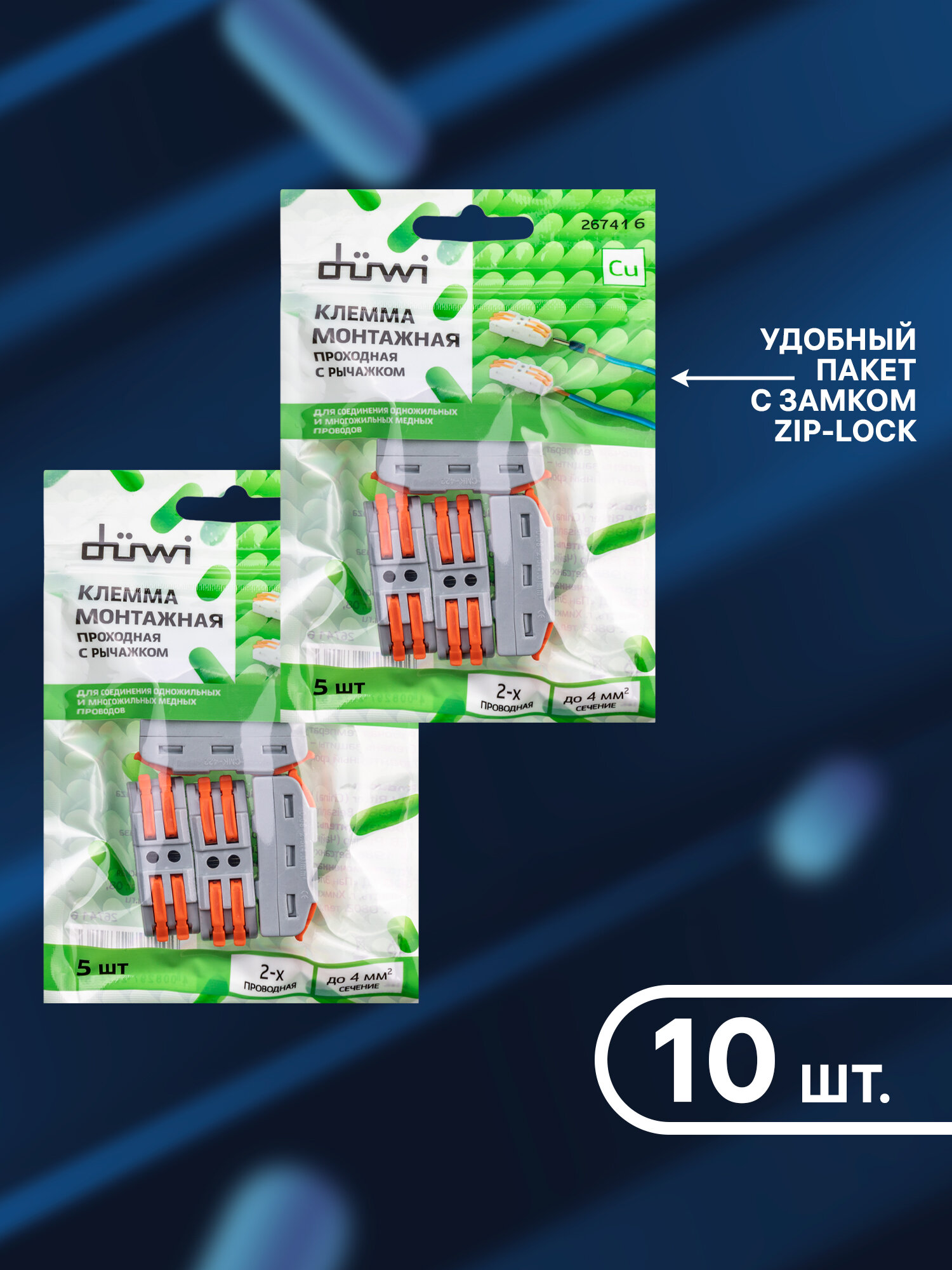 Клемма duwi для проводов соединительная 4 контакта, тип WAGO Ваго СМК 422х2, рычажковая многоразовая, 26741 6 10 шт: сравнение цен, характеристики, фото, актуальное наличие и цены.