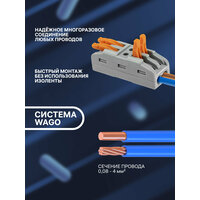 Купить Клемма duwi для проводов соединительная 4 контакта, тип WAGO Ваго СМК 422х2, рычажковая многоразовая, 26741 6 10 шт с доставкой по всей России.